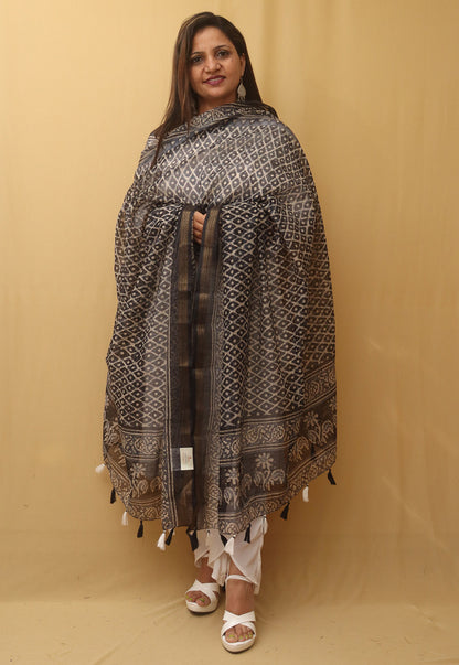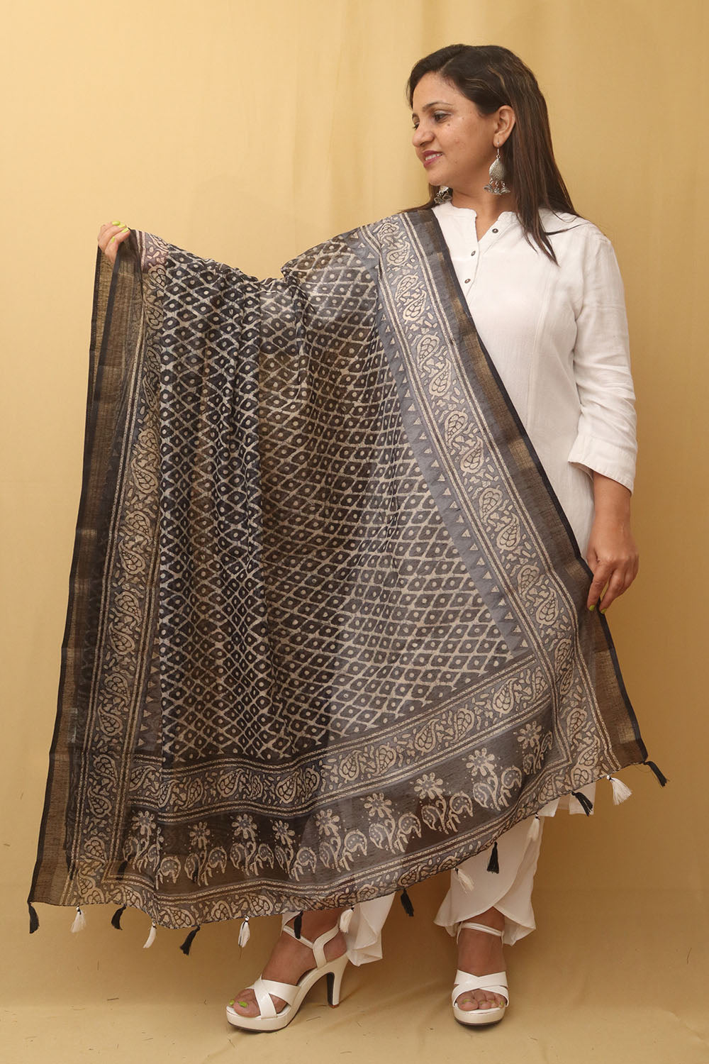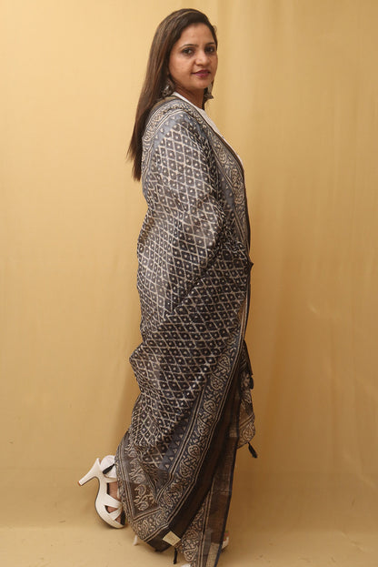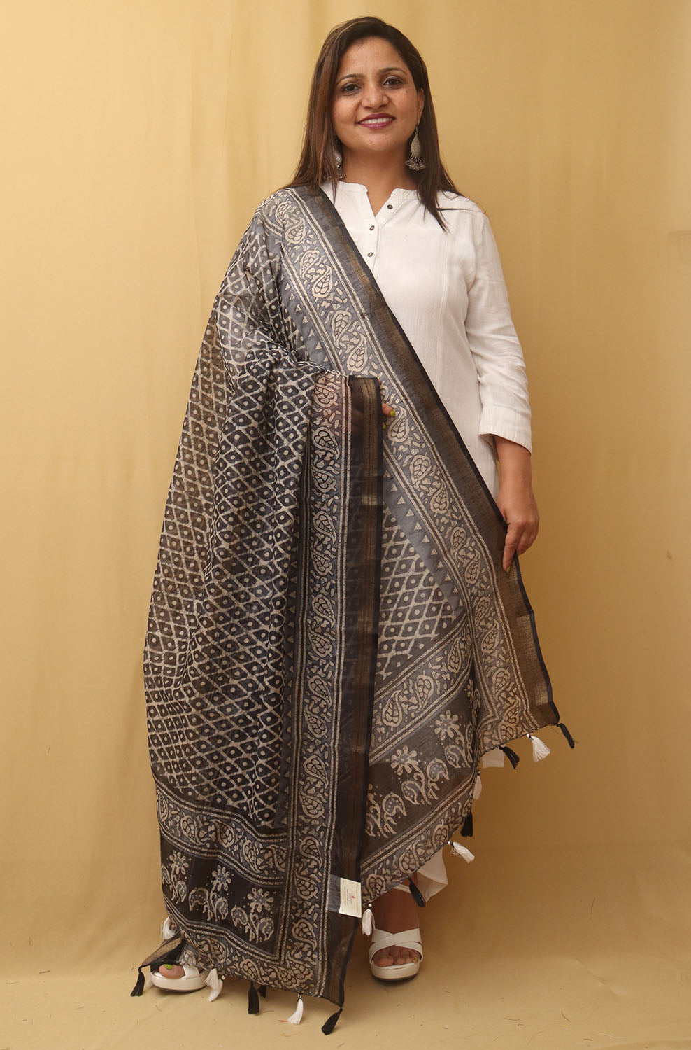 A Block Printed Chanderi Silk Dupatta is a timeless blend of tradition and elegance. Crafted from the exquisite Chanderi silk fabric, it boasts a luxurious texture with a lightweight feel. The defining feature is its meticulous block-printed patterns, created by skilled artisans using wooden blocks dipped in natural dyes. These prints showcase a symphony of intricate designs, from floral motifs to geometric patterns. This dupatta is a versatile accessory, effortlessly enhancing both traditional and contemporary outfits. The silky sheen, soft drape, and unique block prints make it a classic addition to any wardrobe, celebrating India's rich textile heritage.