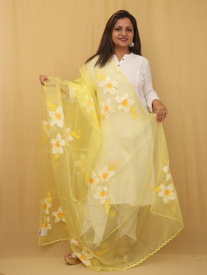 This is a Hand Painted Organza Dupatta, it is individually crafted to give a gorgeous look to Indian personality. This is a simple yet elegant looking dupatta ( Length = 2.5 Mtrs).