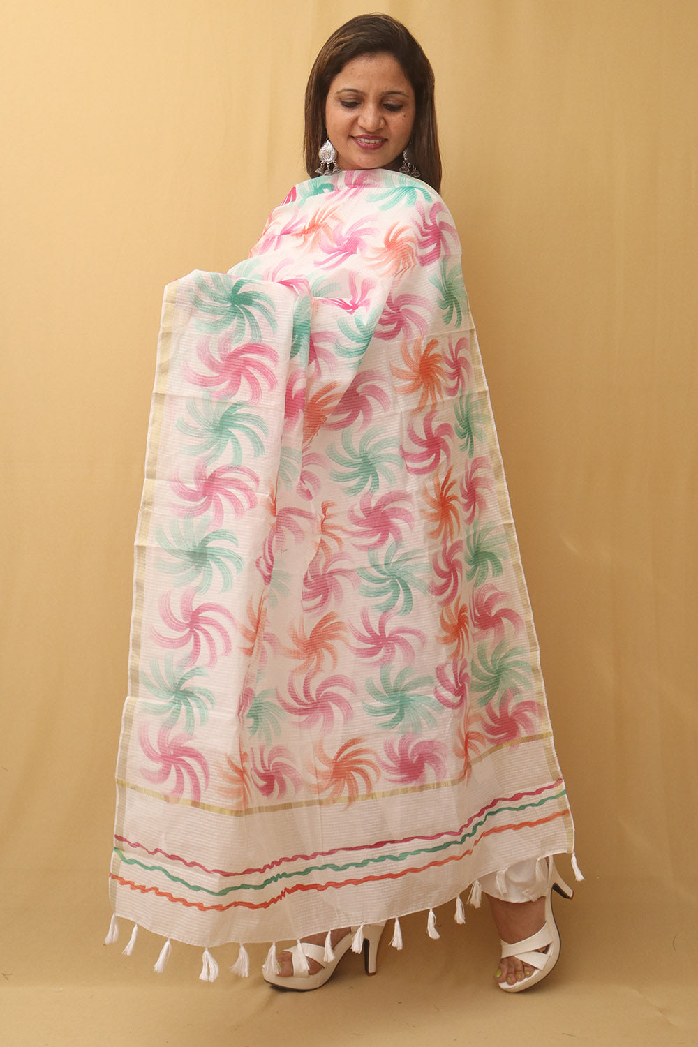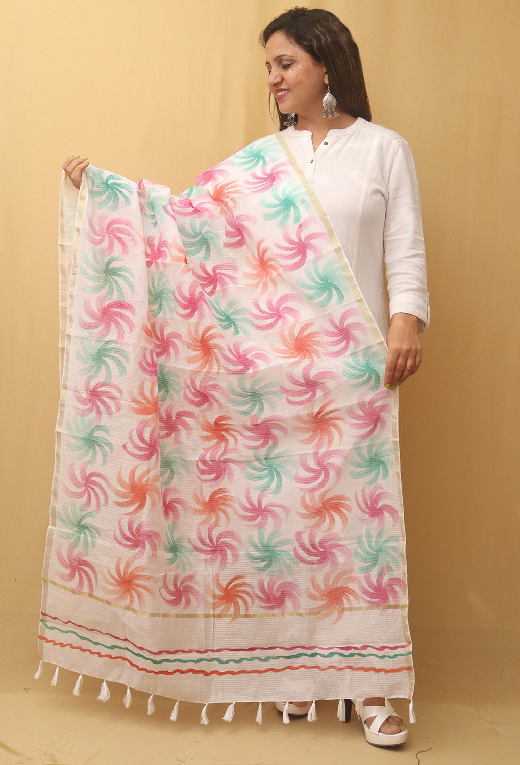 A hand-painted Kota Dupatta is a work of art and elegance that adds a touch of traditional charm to any outfit. Crafted with precision and care, this exquisite piece of Indian textile showcases the rich heritage of Rajasthan. Made from lightweight, breathable Kota fabric, it drapes gracefully and feels comfortable against the skin.