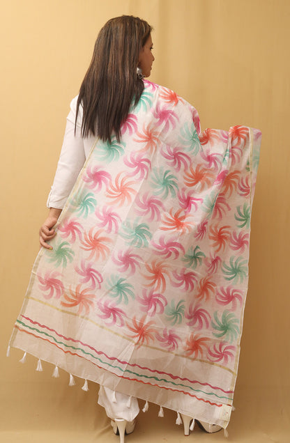 What truly sets this dupatta apart is the intricate hand-painted design. Skilled artisans use natural dyes and brushes to create stunning motifs inspired by nature, culture, or intricate patterns.