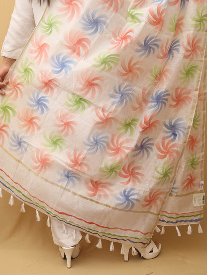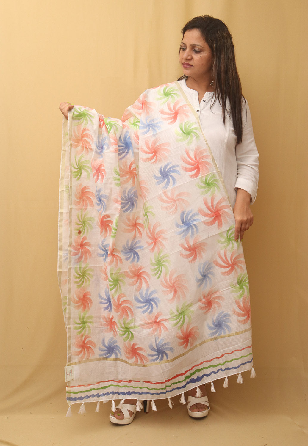 A hand-painted Kota Dupatta is a work of art and elegance that adds a touch of traditional charm to any outfit. Crafted with precision and care, this exquisite piece of Indian textile showcases the rich heritage of Rajasthan. Made from lightweight, breathable Kota fabric, it drapes gracefully and feels comfortable against the skin.