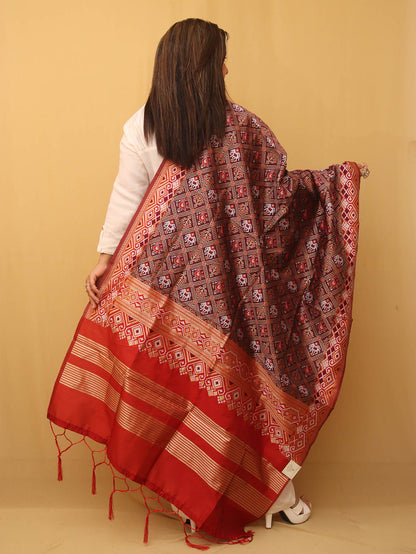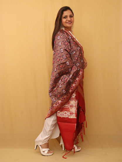The Purple Patola Silk Dupatta is a stunning accessory that adds a touch of elegance to any outfit. Made from luxurious silk fabric, this dupatta features a beautiful patola print in shades of purple, making it a versatile piece that can be paired with a variety of ensembles. The soft and lightweight fabric drapes beautifully, adding a touch of sophistication to your look. The dupatta is perfect for both casual and formal occasions, making it a must-have addition to your wardrobe.