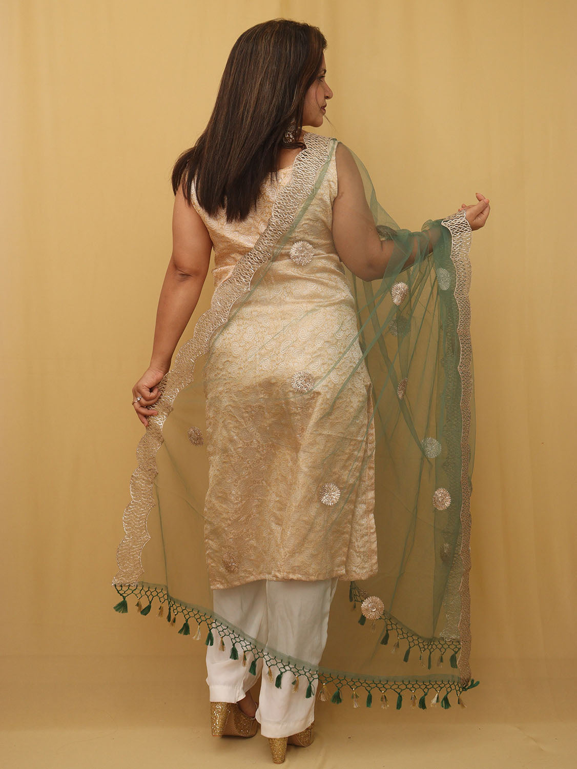 FABRIC: Net has been one of the most sensual fabrics available in the fashion industry. It is used widely to create Indian ethnic attires as well. Net fabric is usually used to create sections of the garment. Or is layered over a sturdier fabric in order to cover the garment in its entirety. It owes its popularity to the mystical aura that it generates when worn.