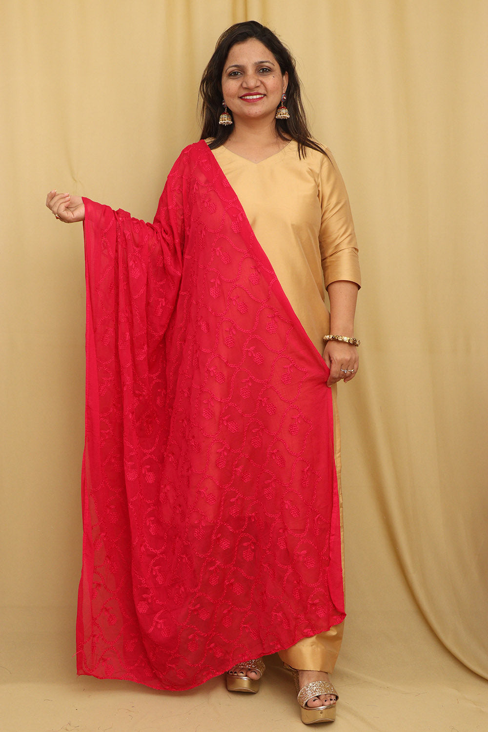 The Pink Trendy Embroidered Georgette Dupatta is a stunning accessory that adds a touch of elegance to any outfit. Made from high-quality georgette fabric, this dupatta features intricate embroidery in a trendy pink color. The lightweight and breathable material make it perfect for all seasons, while the delicate embroidery adds a touch of sophistication. Whether you're dressing up for a special occasion or adding a pop of color to your everyday look, this dupatta is sure to turn heads.