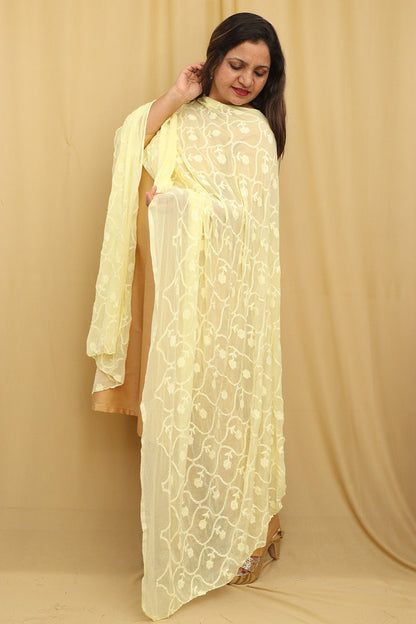 The Yellow Trendy Embroidered Georgette Dupatta is a stunning accessory that will add a pop of color and style to any outfit. Made from high-quality georgette fabric, this dupatta features intricate embroidery in a trendy design that is sure to turn heads. The bright yellow color is perfect for adding a touch of sunshine to your wardrobe, and the lightweight fabric drapes beautifully for a flattering look. Whether you pair it with a simple kurta or a fancy lehenga, this dupatta is sure to elevate your ensemble.