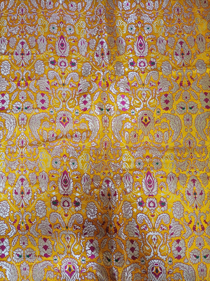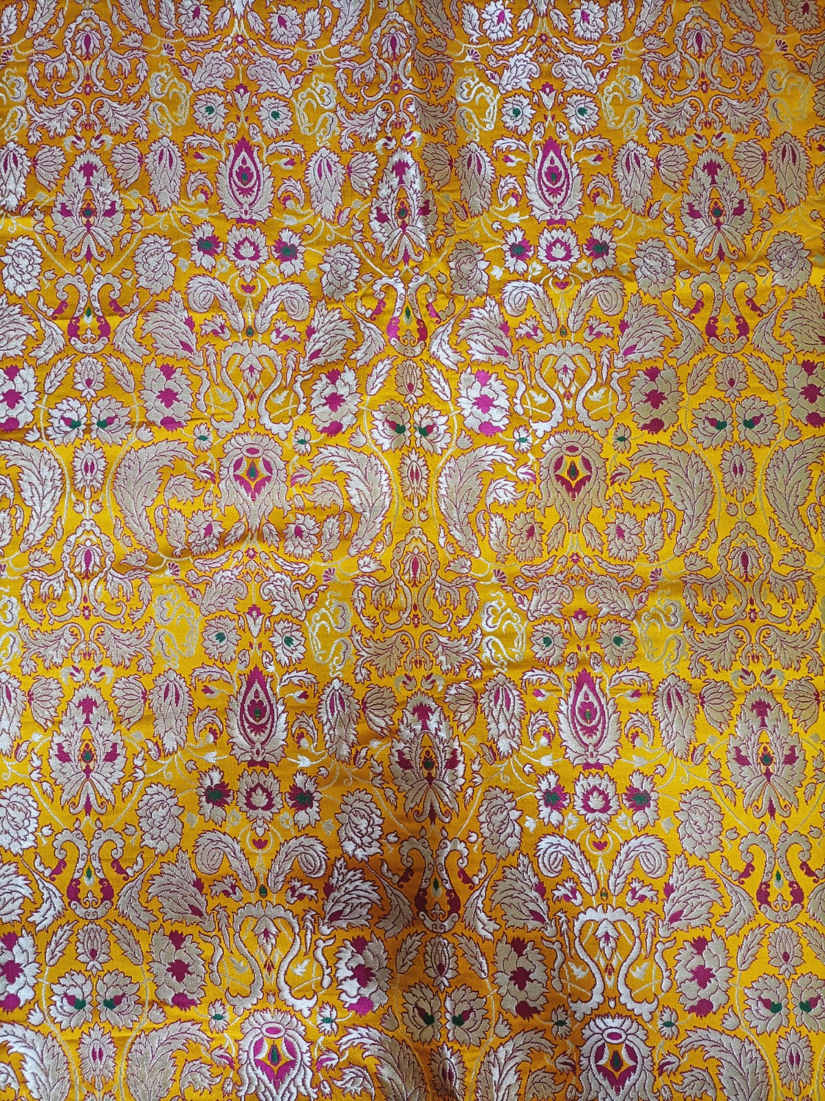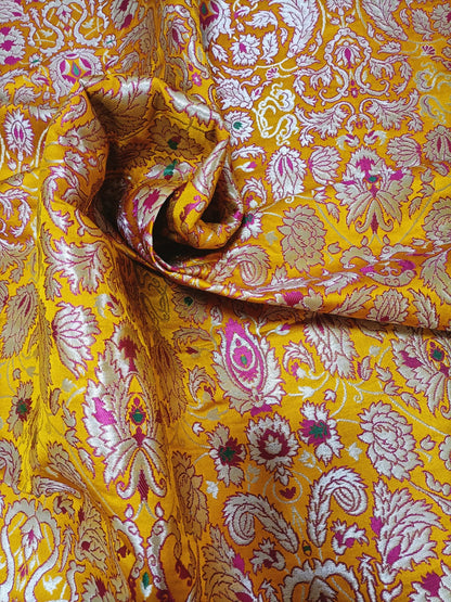 If there is a fabric that has managed to hold woman spellbound by its luxury since time immemorial, it is the enthralling weave of banarasi fabric. The word ‘Kim Khwab’ translates into tiny dreams which can be interpreted to mean that it is ‘the fabric of dreams’. True to its meaning, Kim Khwab is a royal textile which was once popular in the Mughal courts. Buy this beautiful banarasi silk fabric to make suits, blouse or dresses. Let your creativity explore new boundaries! You can even design a beautiful skirt and look gorgeous as well as stylish in a silk attire!