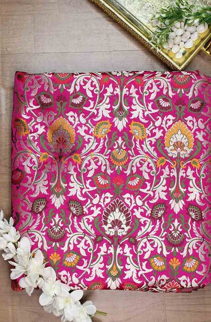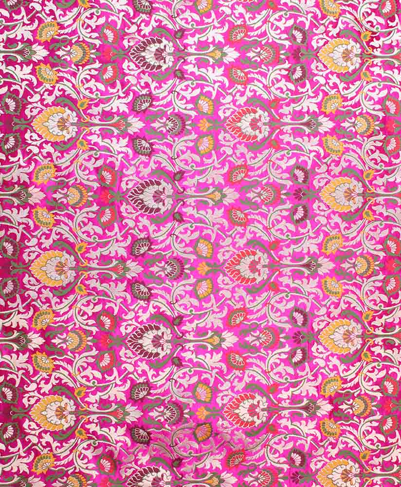 Whether you're attending a wedding, a festival, or any other special occasion, the Pink Banarasi Kimkhwab Silk Meenakari Fabric is sure to make you stand out. Its beautiful pink color and intricate meenakari work make it a truly unique and special fabric that is perfect for creating one-of-a-kind outfits. So why wait? Order your Pink Banarasi Kimkhwab Silk Meenakari Fabric today and start creating your dream outfit!