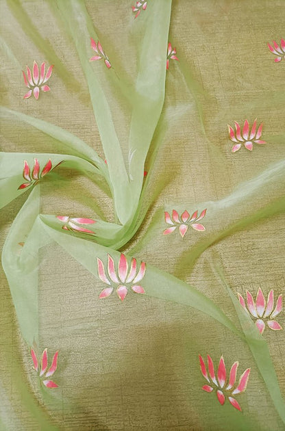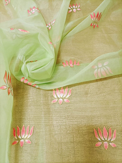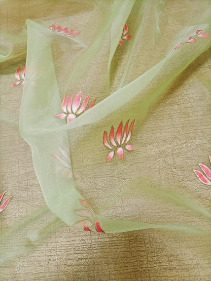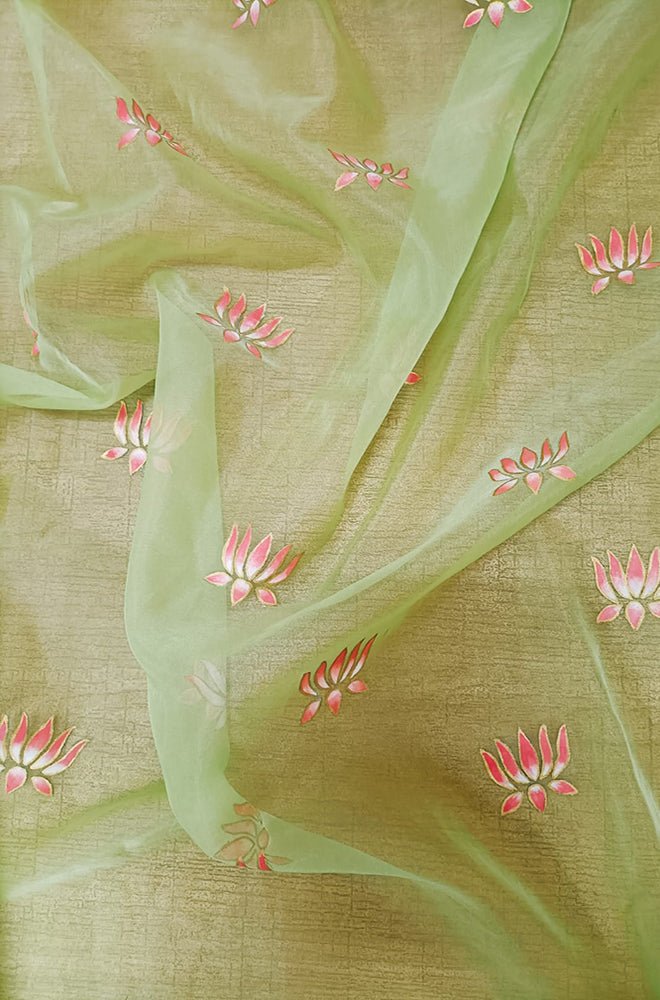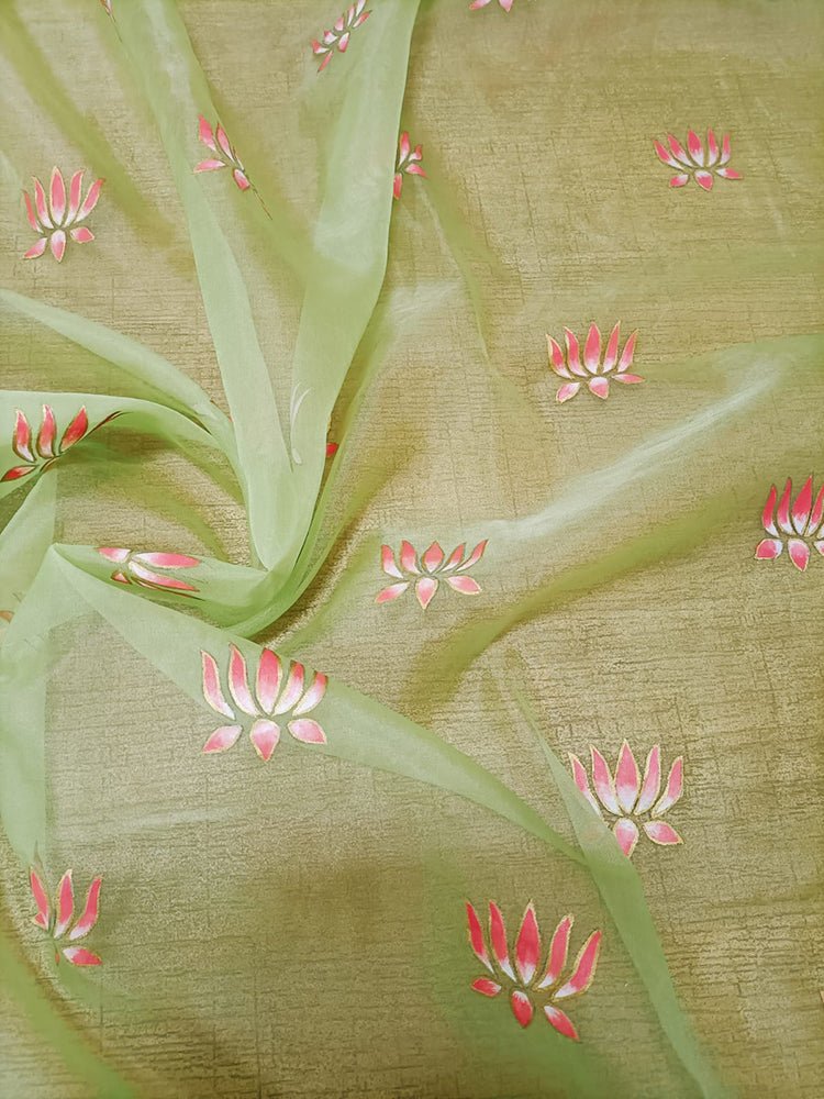 This is a Hand Painted Organza Fabric, it is individually crafted to give a gorgeous look to Indian personality. This is a simple yet elegant looking Fabric.