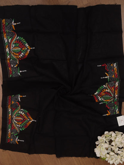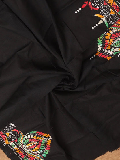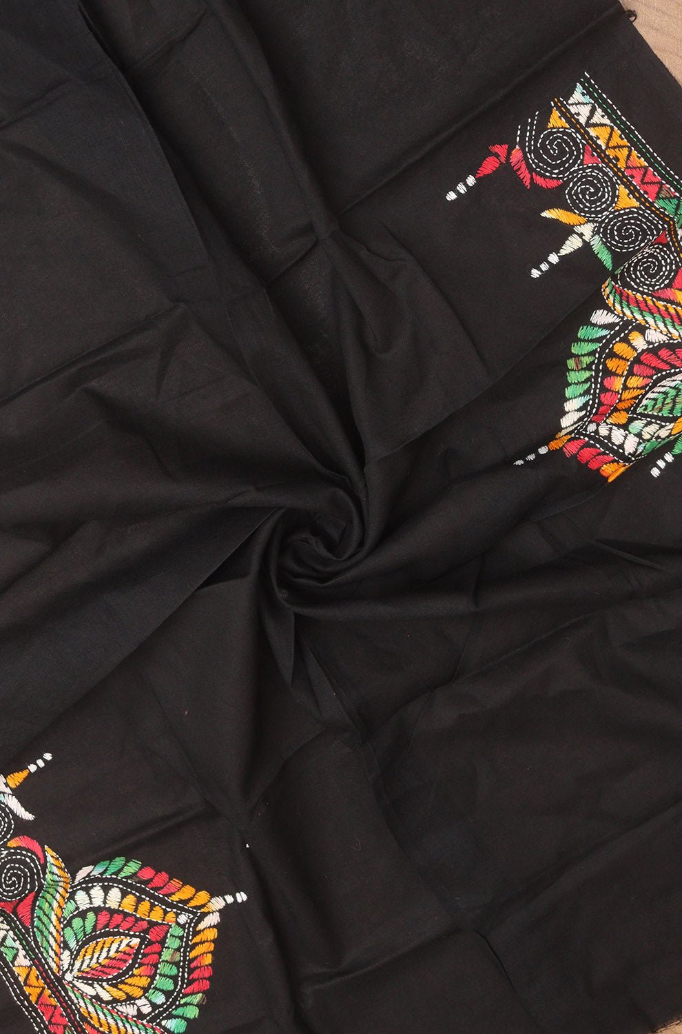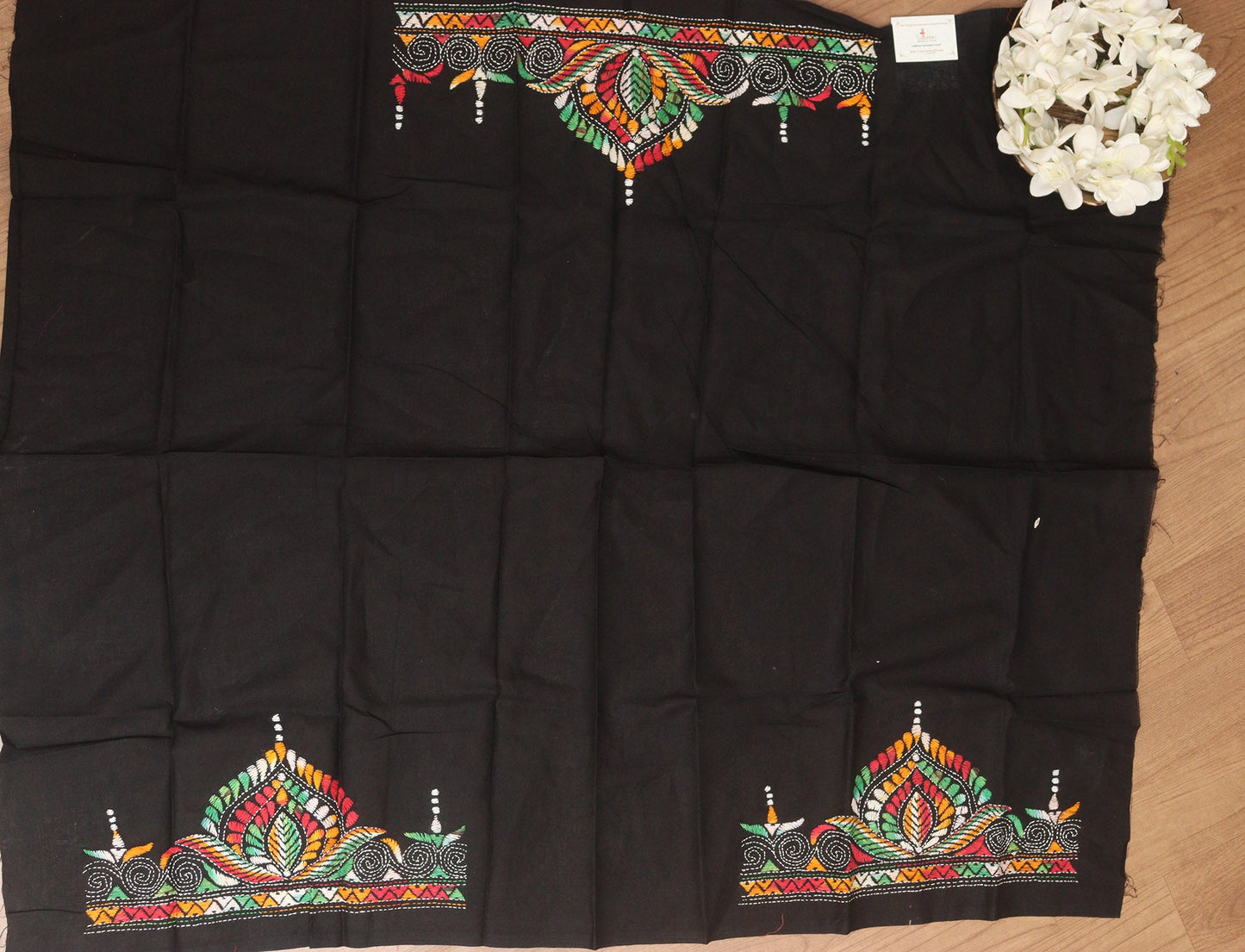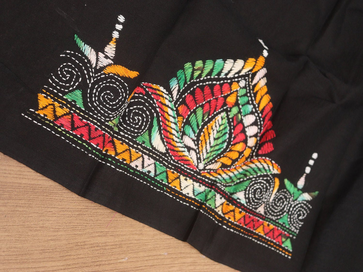 Black Embroidered Kantha Cotton Blouse Piece Fabric ( 1 Mtr )
