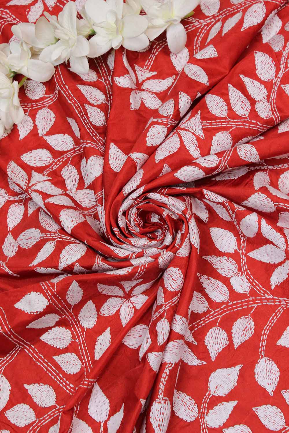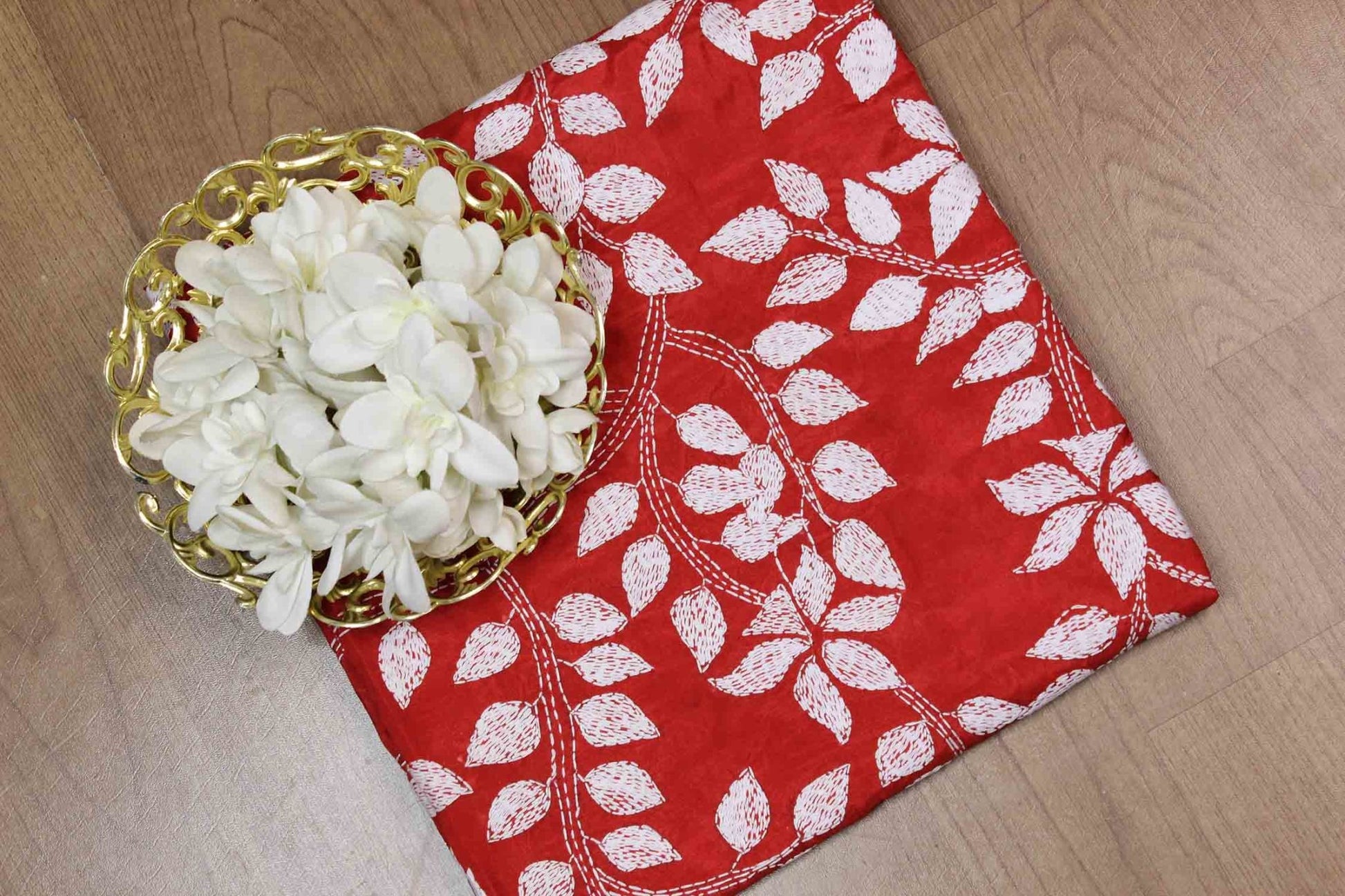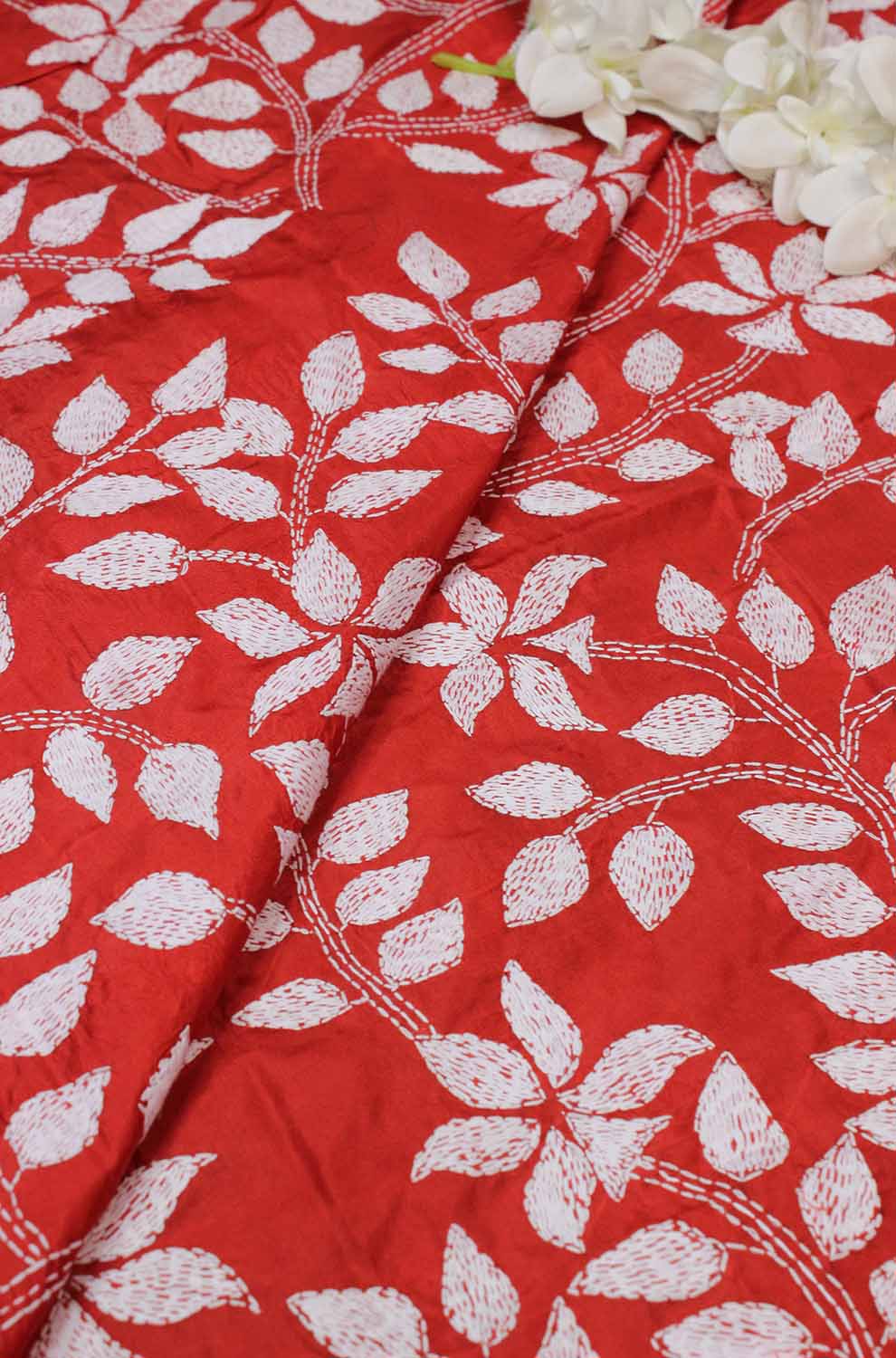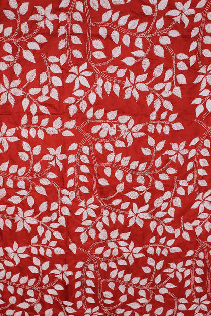 The interesting thing in this embroidery is the entire cloth is covered with running stitches, and playing beautiful motifs, of flowers animals and birds. And geometrical shapes, as well as themes from everyday activities. The stitching on the cloth gives it a slight wrinkled wavy effect.