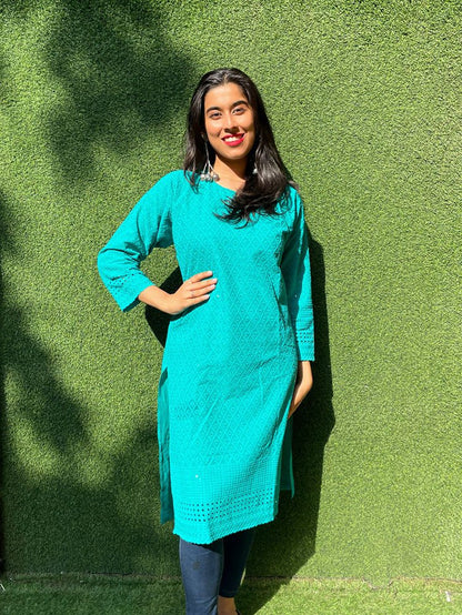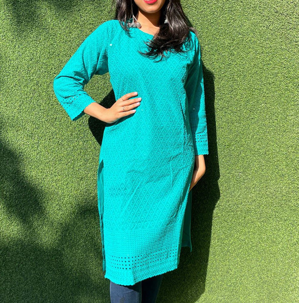 A beautiful Cotton embroidered stitched Kurti . This Kurti is embroidered with intricate chikankari.