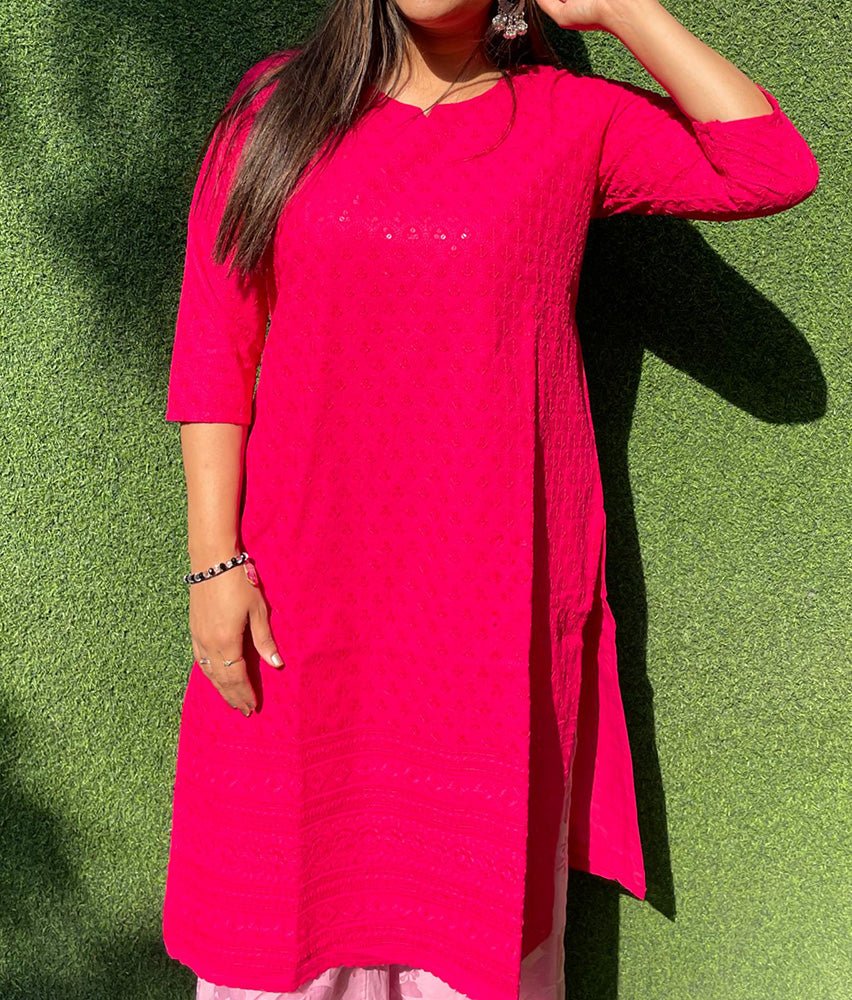 A beautiful Cotton embroidered stitched Kurti . This Kurti is embroidered with intricate chikankari.