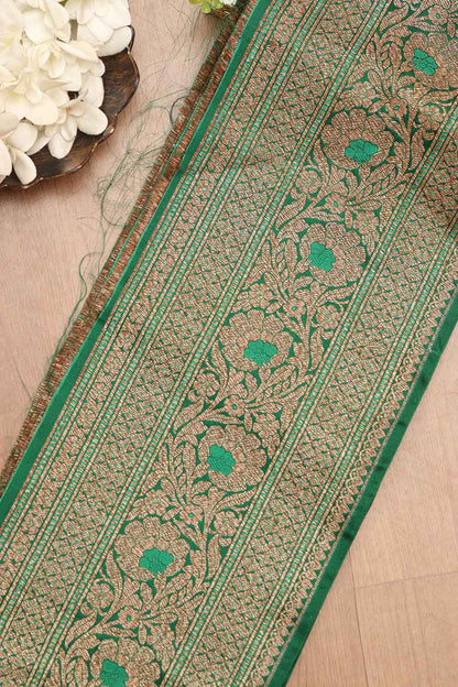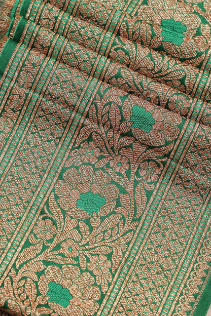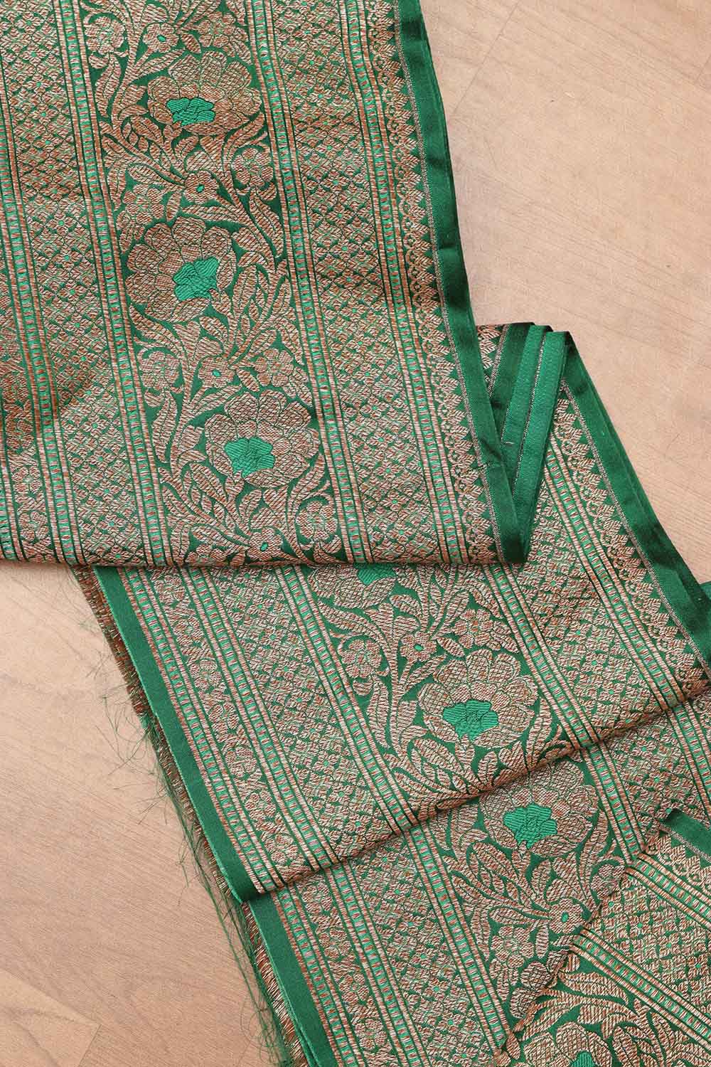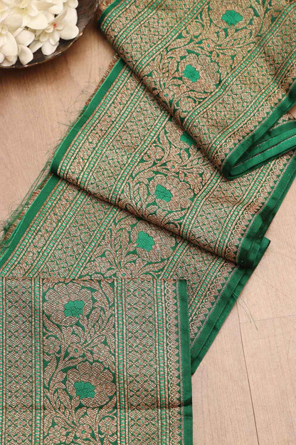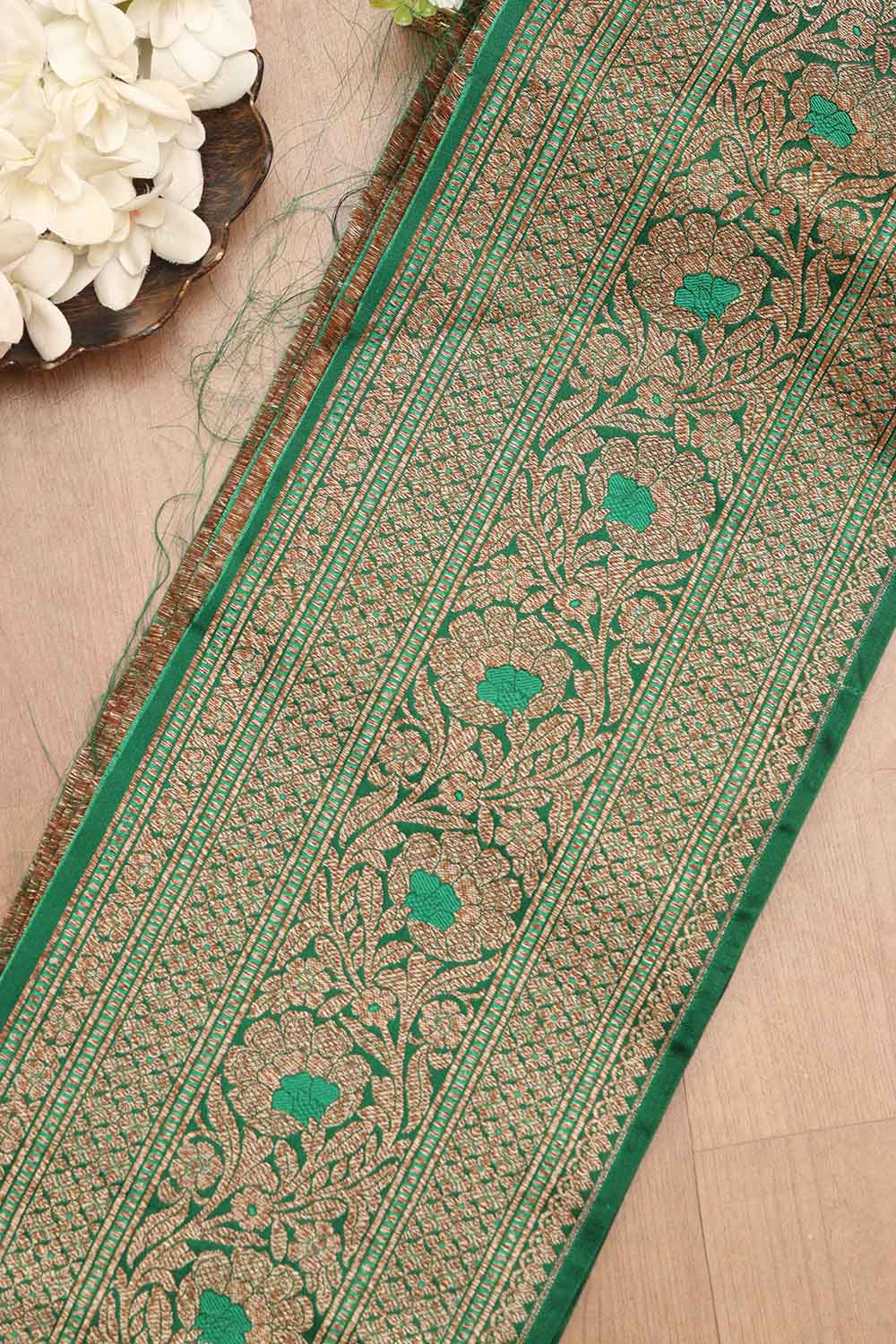 The Exquisite Green Banarasi Silk Lace is a stunning fabric that exudes elegance and sophistication. Made from high-quality silk, this fabric features intricate lace detailing that adds a touch of luxury to any outfit. The vibrant green color is perfect for adding a pop of color to your wardrobe, while the Banarasi silk gives it a rich and luxurious feel. Whether you're looking to create a show-stopping evening gown or a statement blouse, this fabric is sure to impress.