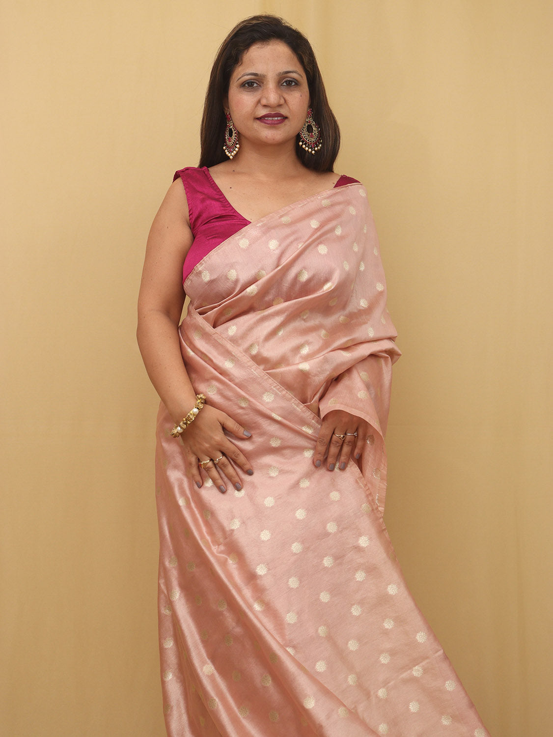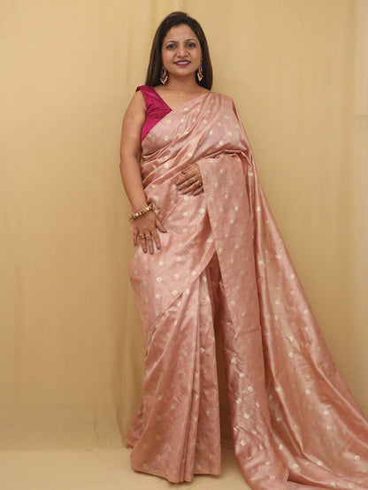 The Exquisite Pink Banarasi Tissue Silk Saree is a must-have for anyone who wants to look their best at any special occasion. Whether you're attending a wedding, a party, or any other event, this saree is sure to turn heads and make you feel confident and beautiful. So why wait? Order your Exquisite Pink Banarasi Tissue Silk Saree today and experience the beauty and elegance of traditional Indian attire!