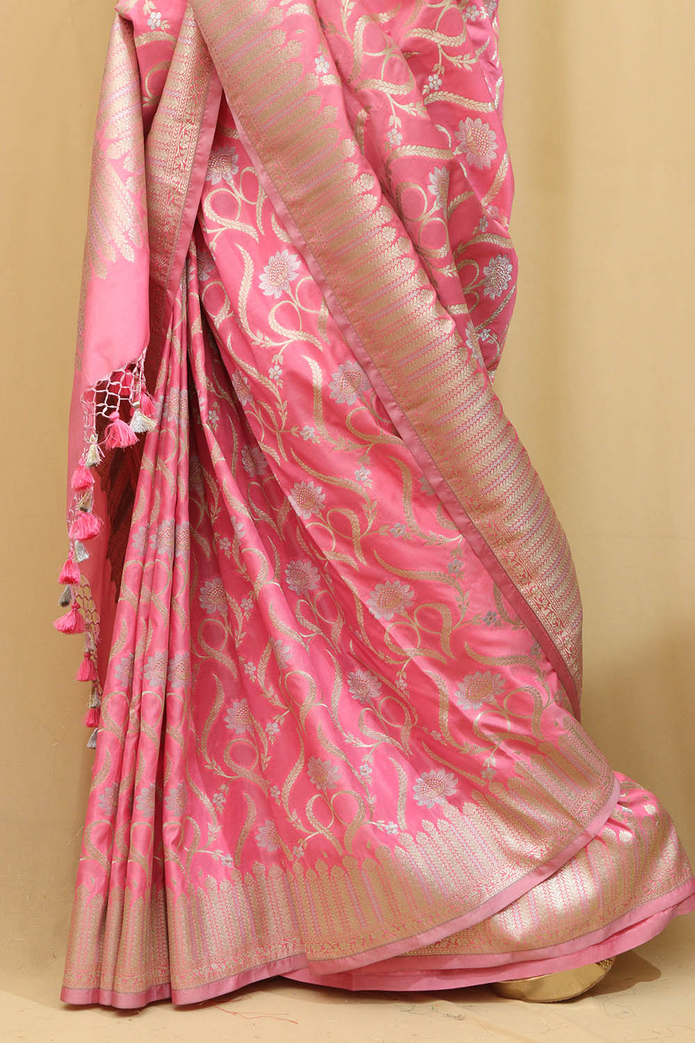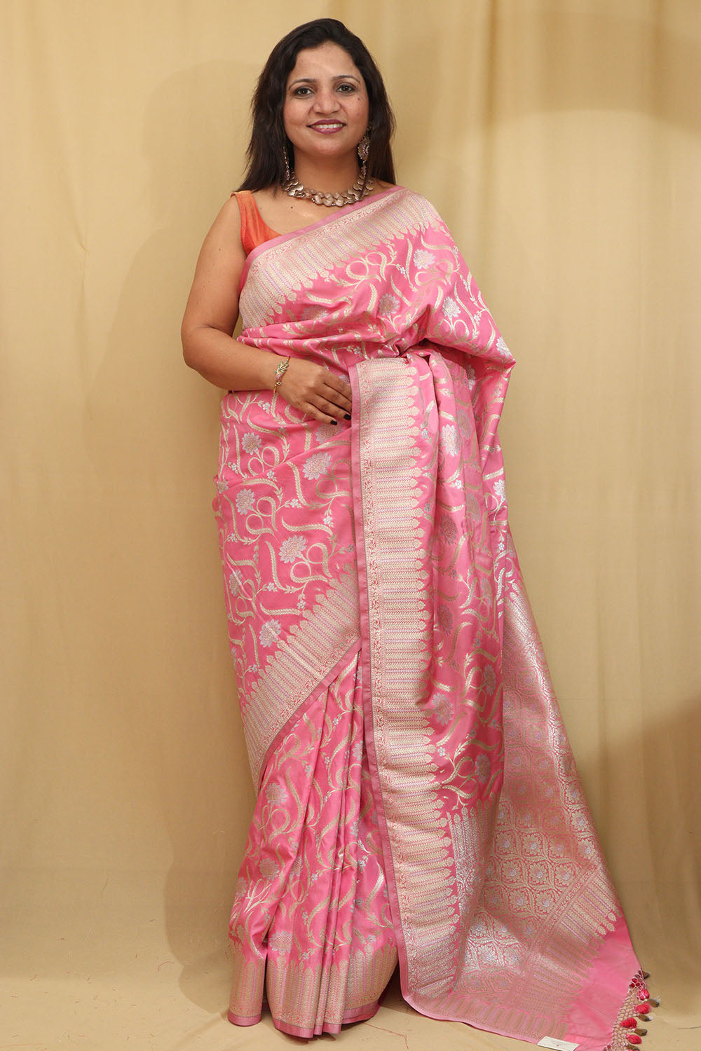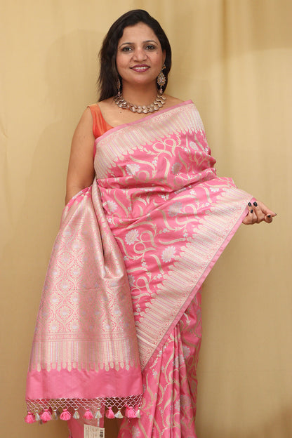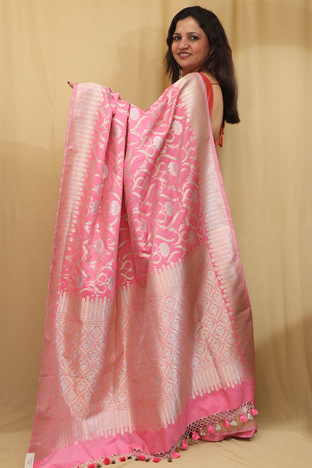 Stunning Pink Banarasi Silk Saree - Elegant and Timeless
