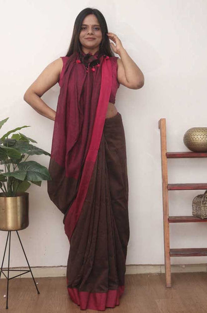 The Brown Bengal Plain Cotton Saree with Contrast Border is a stunning and elegant piece that exudes traditional charm and sophistication. Made from high-quality cotton fabric, this saree is lightweight and comfortable to wear, making it perfect for any occasion. The rich brown color of the saree is complemented by a contrasting border in a vibrant hue, adding a pop of color and visual interest. The simplicity of the design is what makes this saree truly stand out, making it a versatile piece that can be dressed up or down.