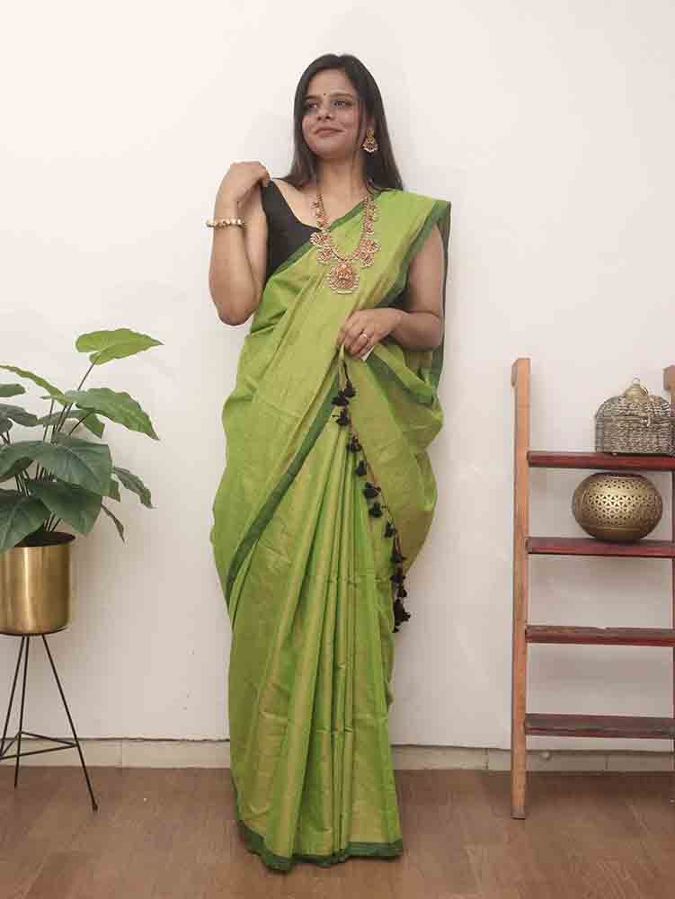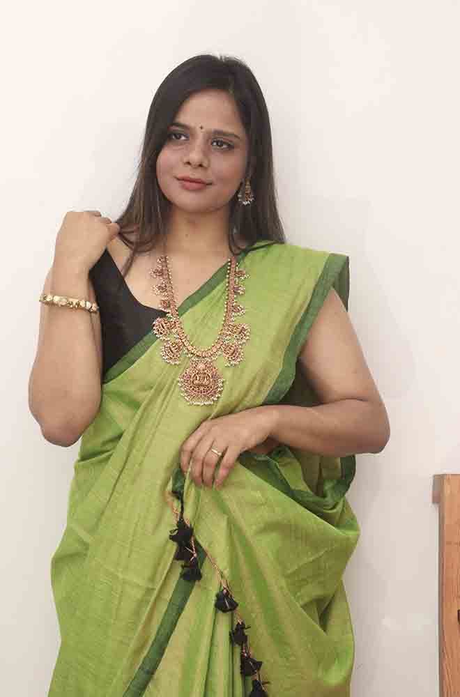 The Green Bengal Plain Tissue Cotton Saree is a beautiful and elegant piece of clothing that is perfect for any occasion. Made from high-quality cotton, this saree is lightweight and comfortable to wear all day long. The green color of the saree is vibrant and eye-catching, making it a great choice for those who want to stand out in a crowd. The plain tissue design adds a touch of sophistication to the saree, making it perfect for both casual and formal events.