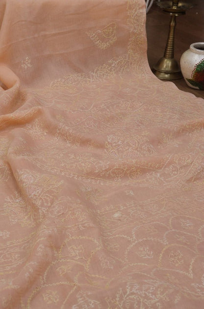 This saree is perfect for weddings, parties, and other special occasions. The beautiful orange color is sure to make you stand out in the crowd. The intricate chikankari embroidery is done by skilled artisans and adds a touch of traditional elegance to the saree.