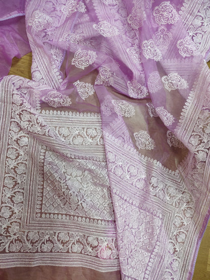 From our exclusive collection of Chikankari Craftsmen, this is a Organza Silk saree with allover designer heavy and intricate embellished Machine Chikankari Embroidered Work allover, which you would love to have it in your wardrobe.