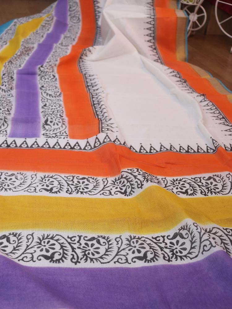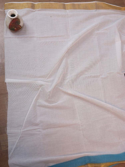 Introducing our exquisite Off White Hand Painted Pure Kerala Cotton Saree, perfect for any occasion. This saree is made from pure Kerala cotton, which is known for its softness and durability. The saree is hand-painted with intricate designs, making it a unique and one-of-a-kind piece.