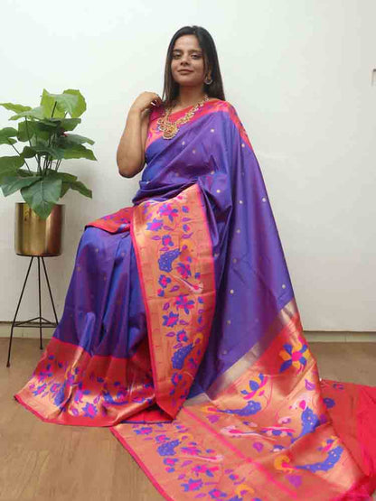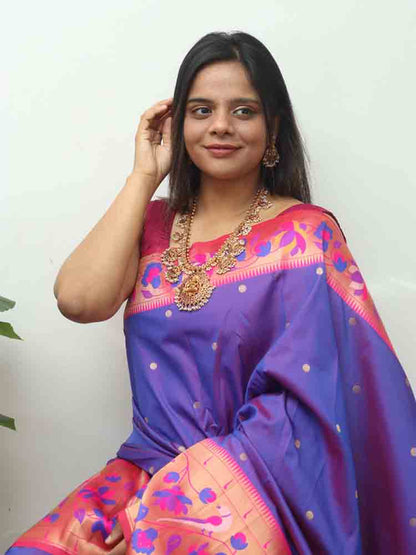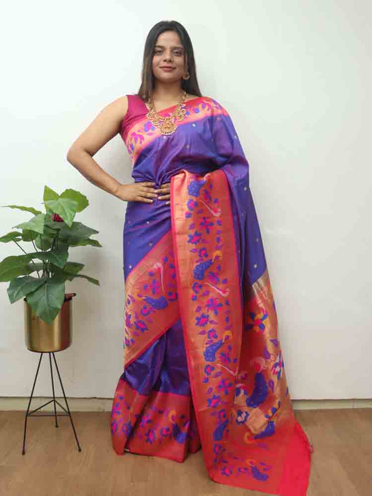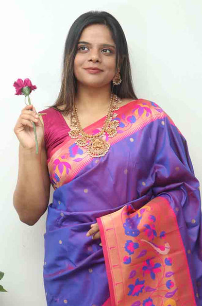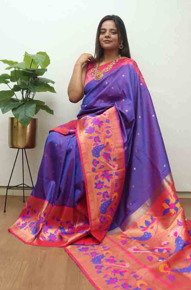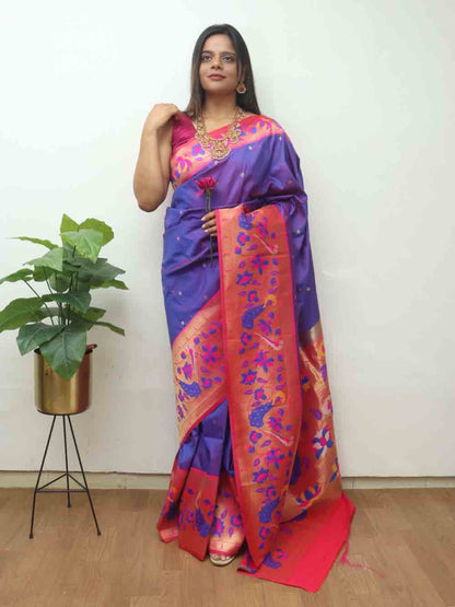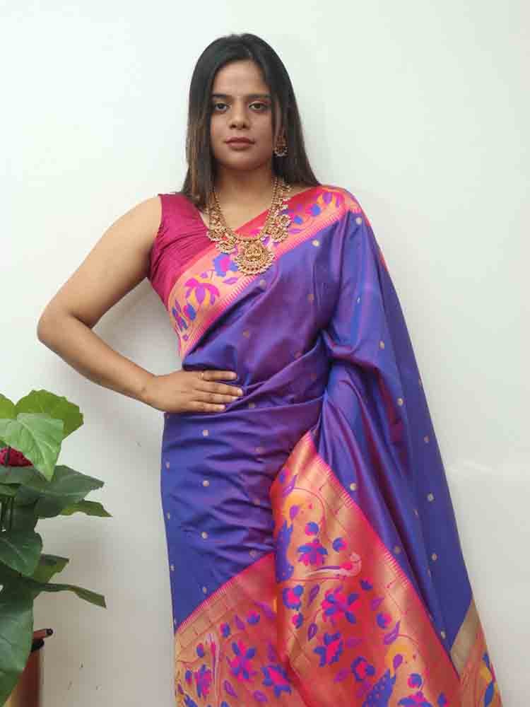 Lavanya is a Royal Collection to enhance your look with grace having beautiful motifs inspired from nature.A lightweight & classy Paithani is a head-turner for every occasion!