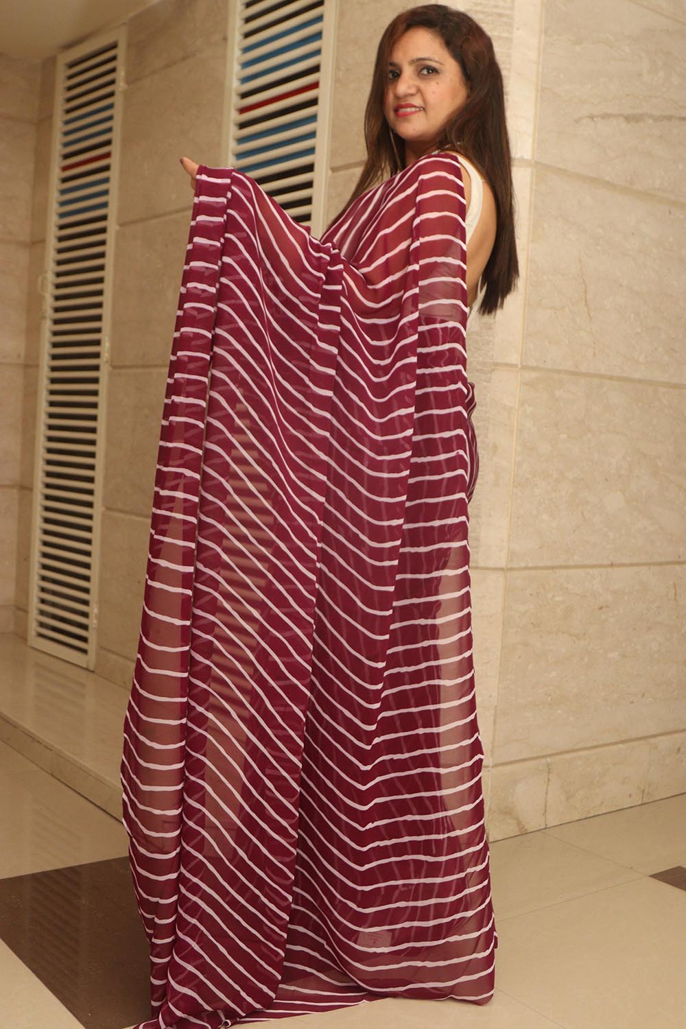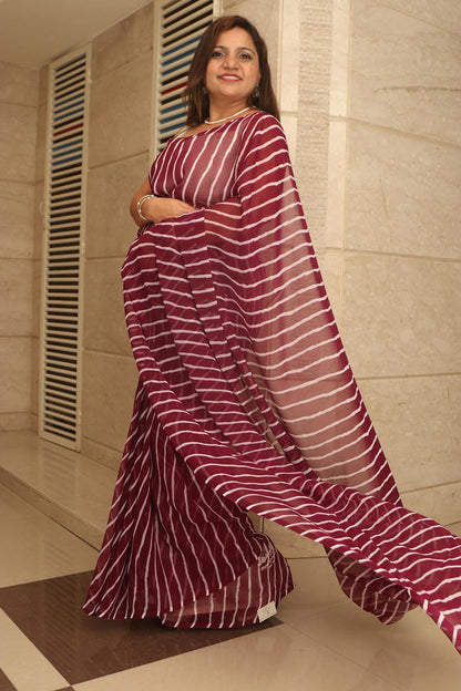 The Purple Leheriya Georgette Saree is a stunning piece of traditional Indian attire that exudes elegance and sophistication. Made from high-quality georgette fabric, this saree features a beautiful purple color with intricate leheriya print that adds a touch of glamour to any outfit. The lightweight and flowy fabric make it perfect for any occasion, whether it's a wedding, party, or festival. The saree comes with a matching blouse piece that can be tailored to your measurements for a perfect fit. Stand out from the crowd with this gorgeous Purple Leheriya Georgette Saree and make a statement wherever you go.