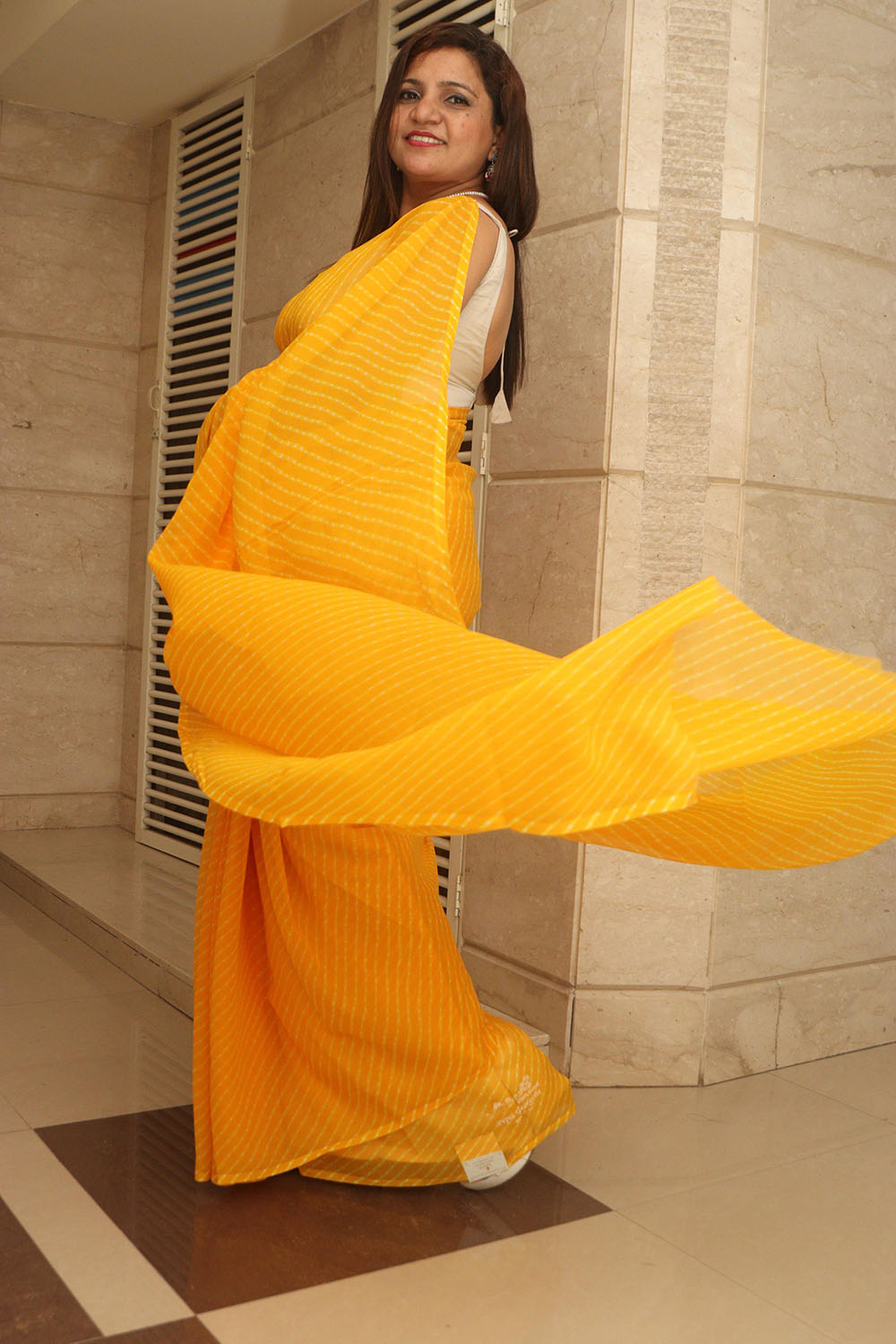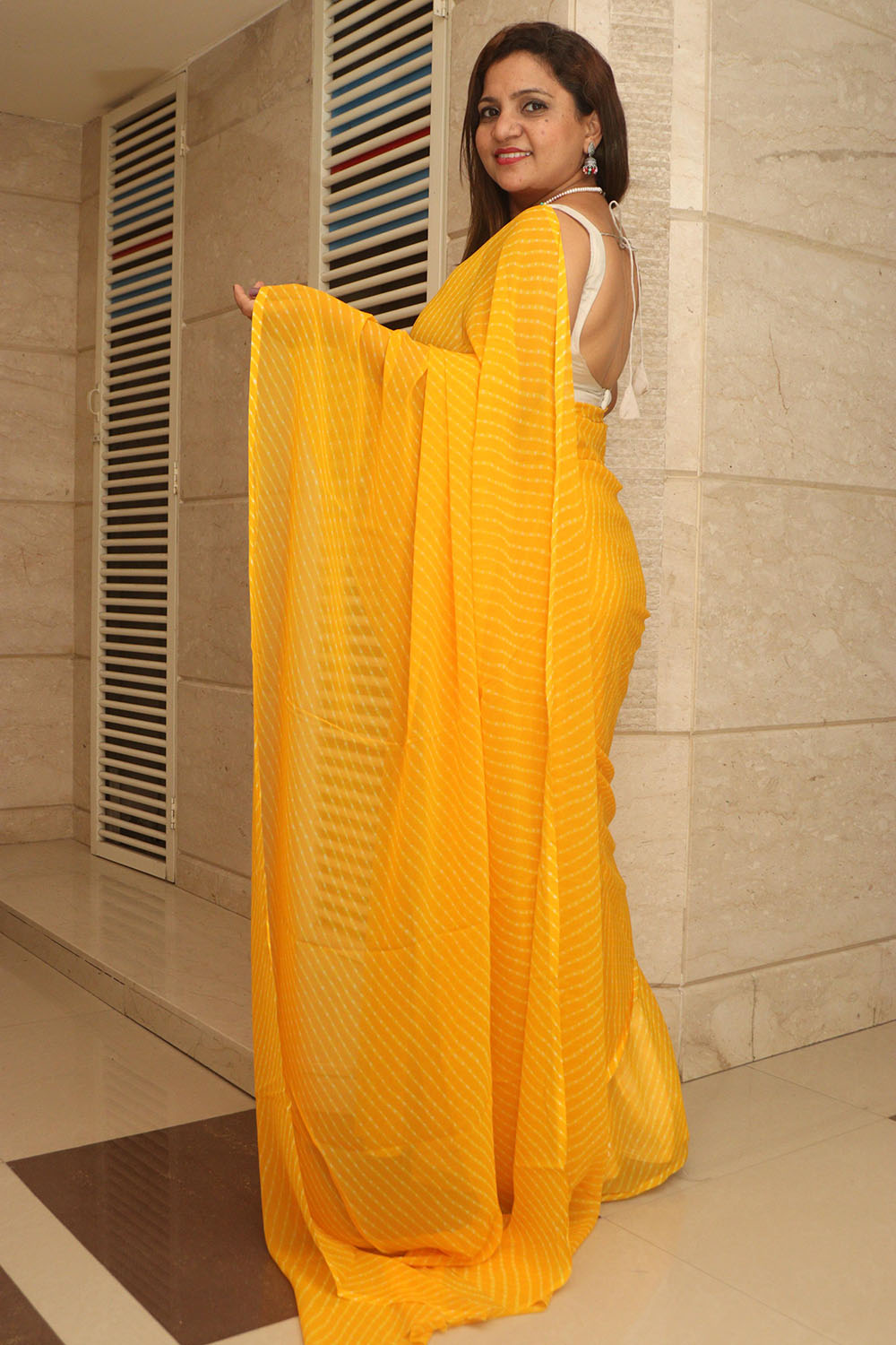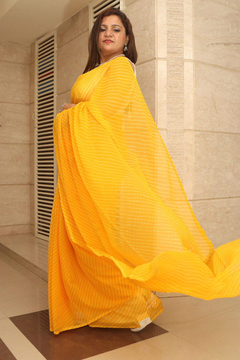 The Yellow Leheriya Georgette Saree is a stunning piece of traditional Indian attire that exudes elegance and grace. Made from lightweight georgette fabric, this saree features a beautiful yellow leheriya print that adds a pop of color to any outfit. The intricate design and delicate detailing make this saree a must-have for any special occasion. The soft and flowy fabric drapes beautifully, enhancing the natural curves of the body. Pair it with a matching blouse and statement jewelry for a complete look that is sure to turn heads.