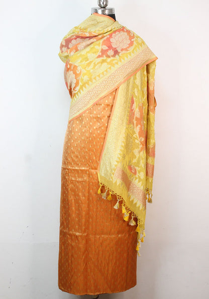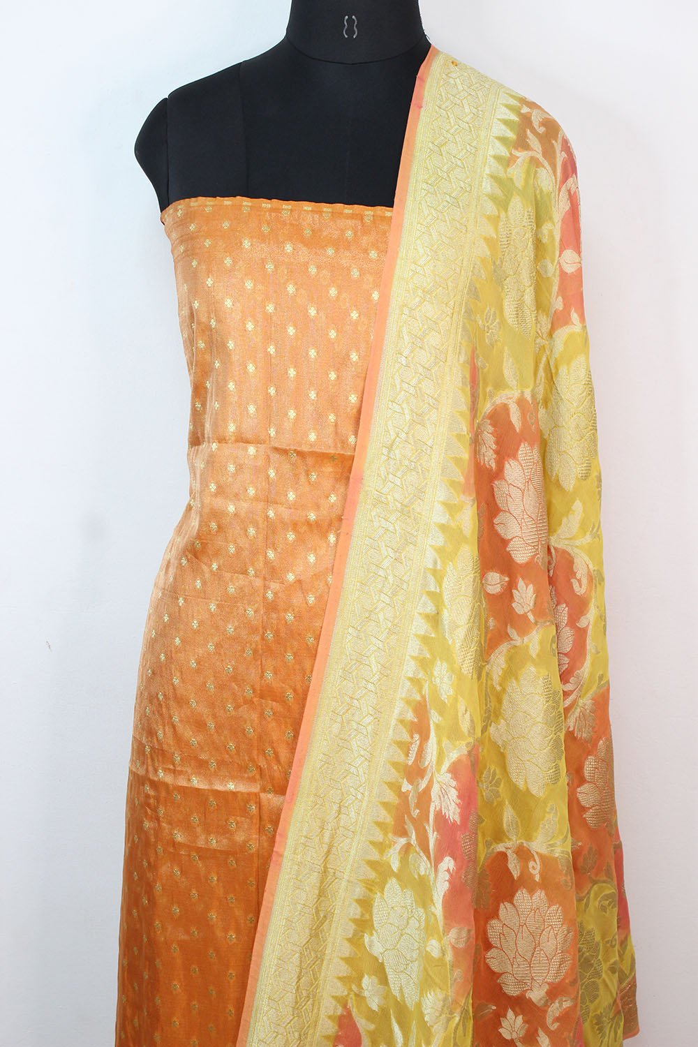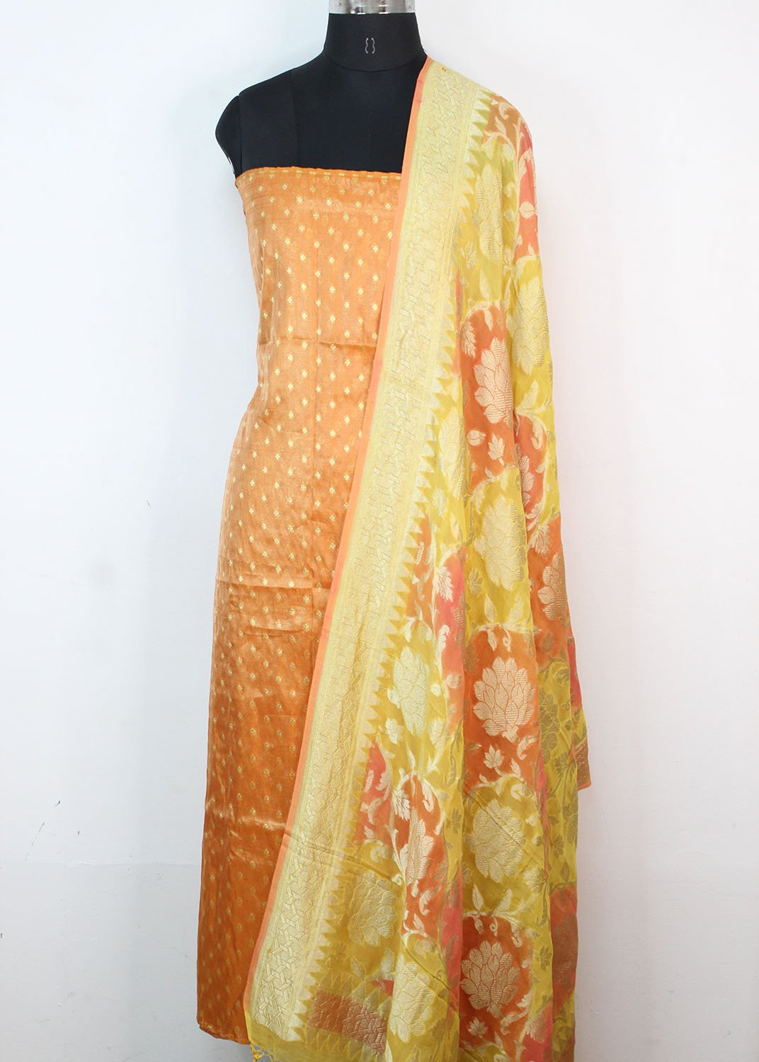 The richness of the material has made Banarasi outfits to be every Indian courtier’s cult weaves for ages now. Banarasi suits denote an affluent taste and are a display of lavish vintage choice of a woman. These suits make great wear for family functions, wedding outfits or pre / post bridal wear. Banarasi Suits are premier grade of clothing, carefully chosen just for you. Let this product travel from the heart of Varanasi straight to your heart. It comes with Top, Dupatta and Bottom fabric.