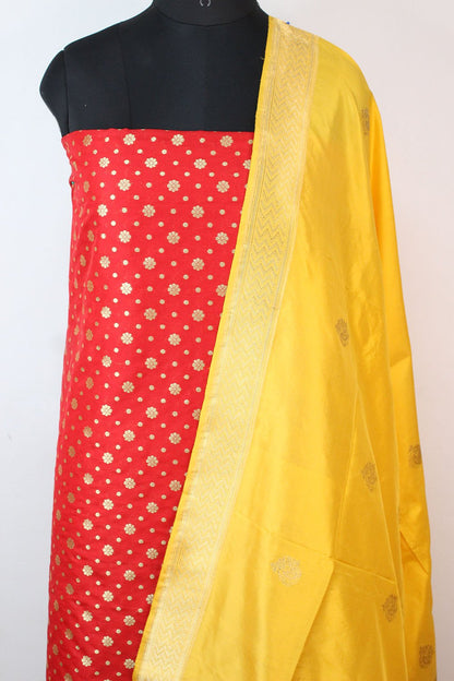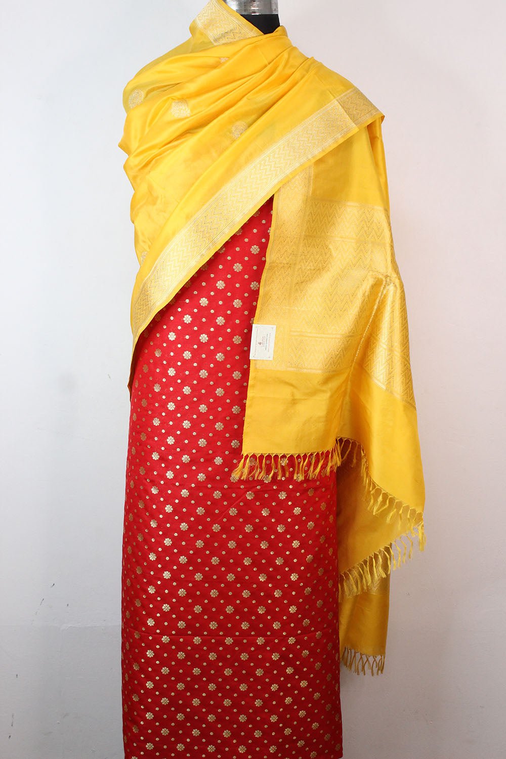 The richness of the material has made Banarasi outfits to be every Indian courtier’s cult weaves for ages now. Banarasi suits denote an affluent taste and are a display of lavish vintage choice of a woman. These suits make great wear for family functions, wedding outfits or pre / post bridal wear. Banarasi Suits are premier grade of clothing, carefully chosen just for you. Let this product travel from the heart of Varanasi straight to your heart. It comes with Top, Dupatta and Bottom fabric.