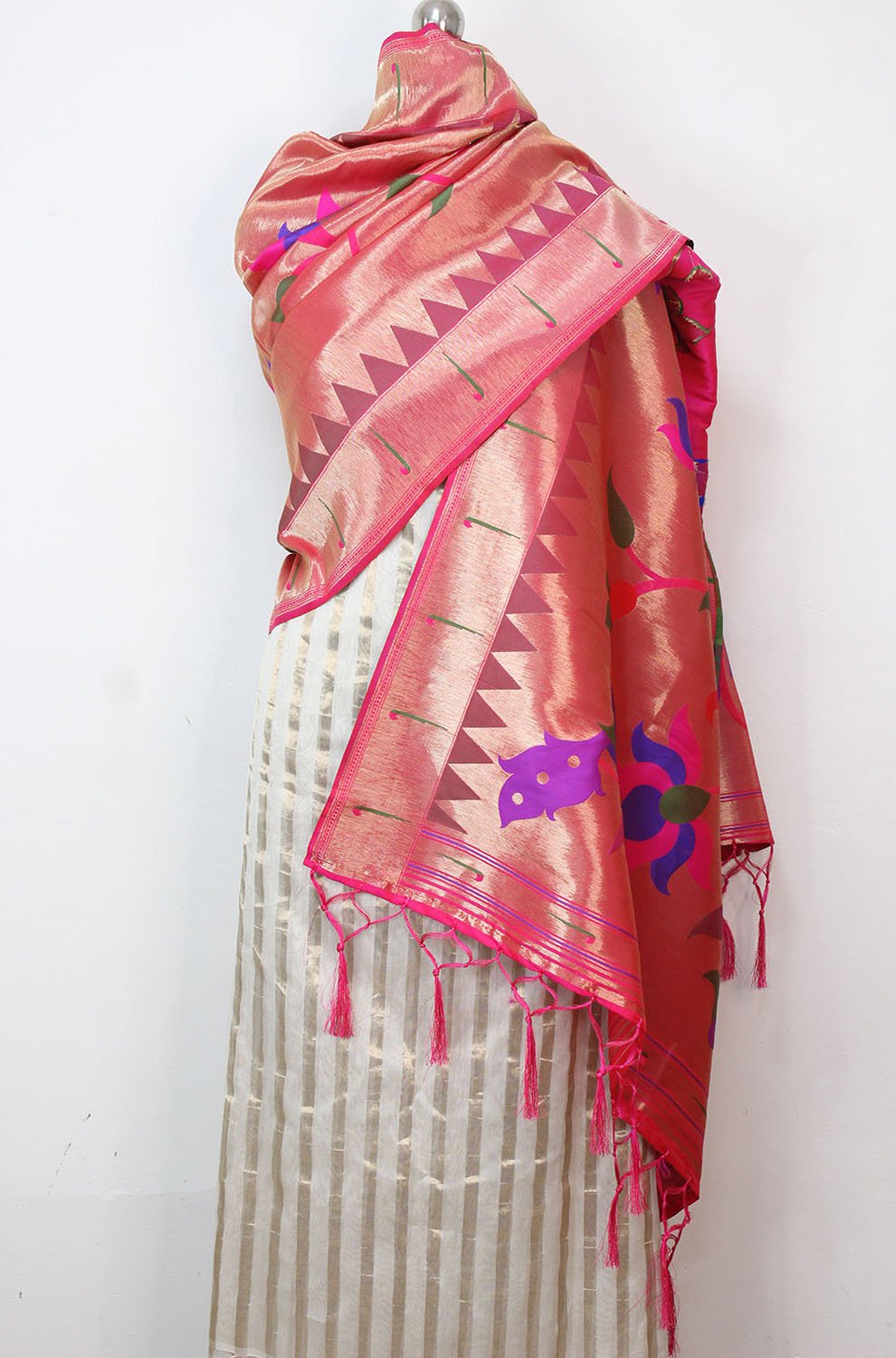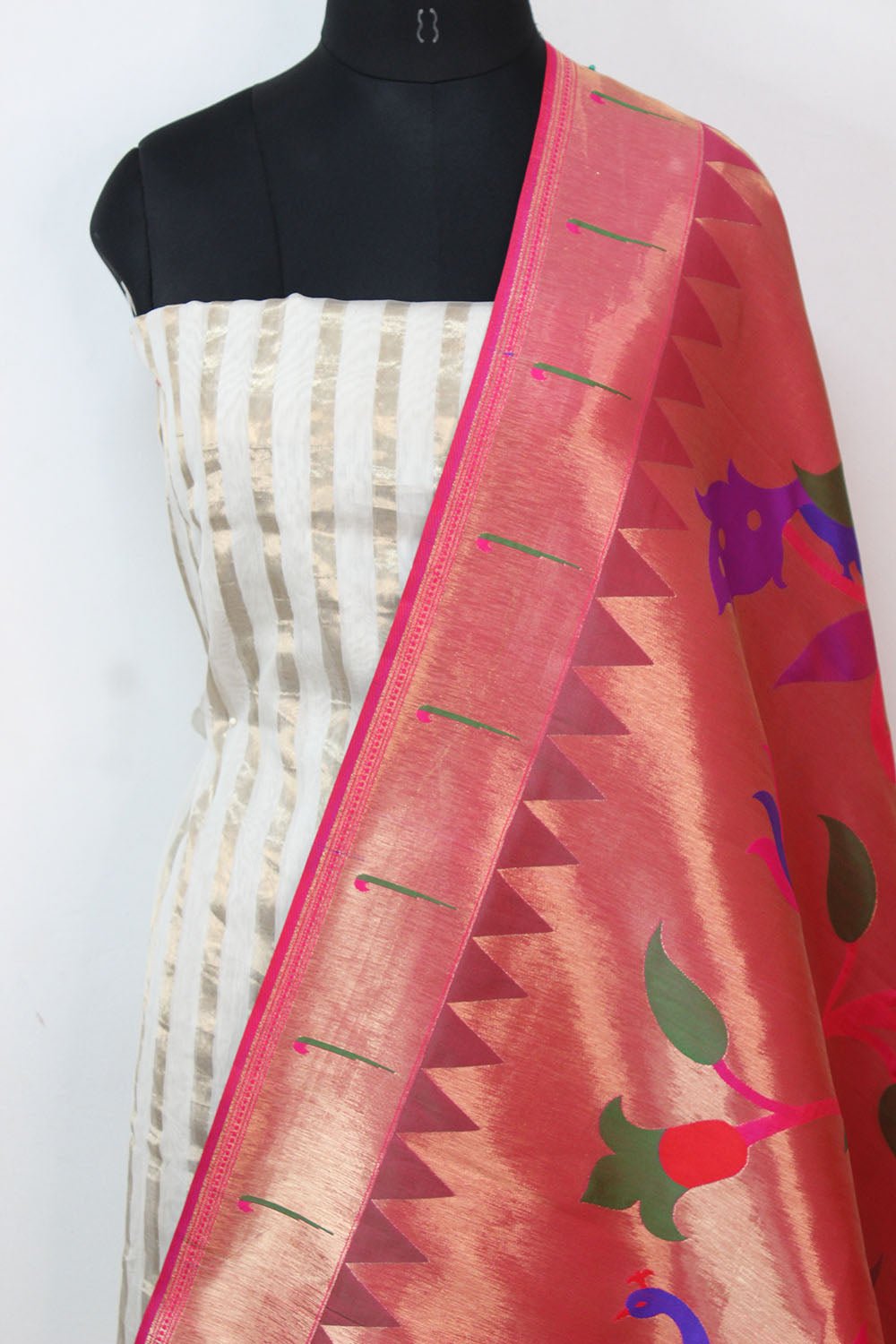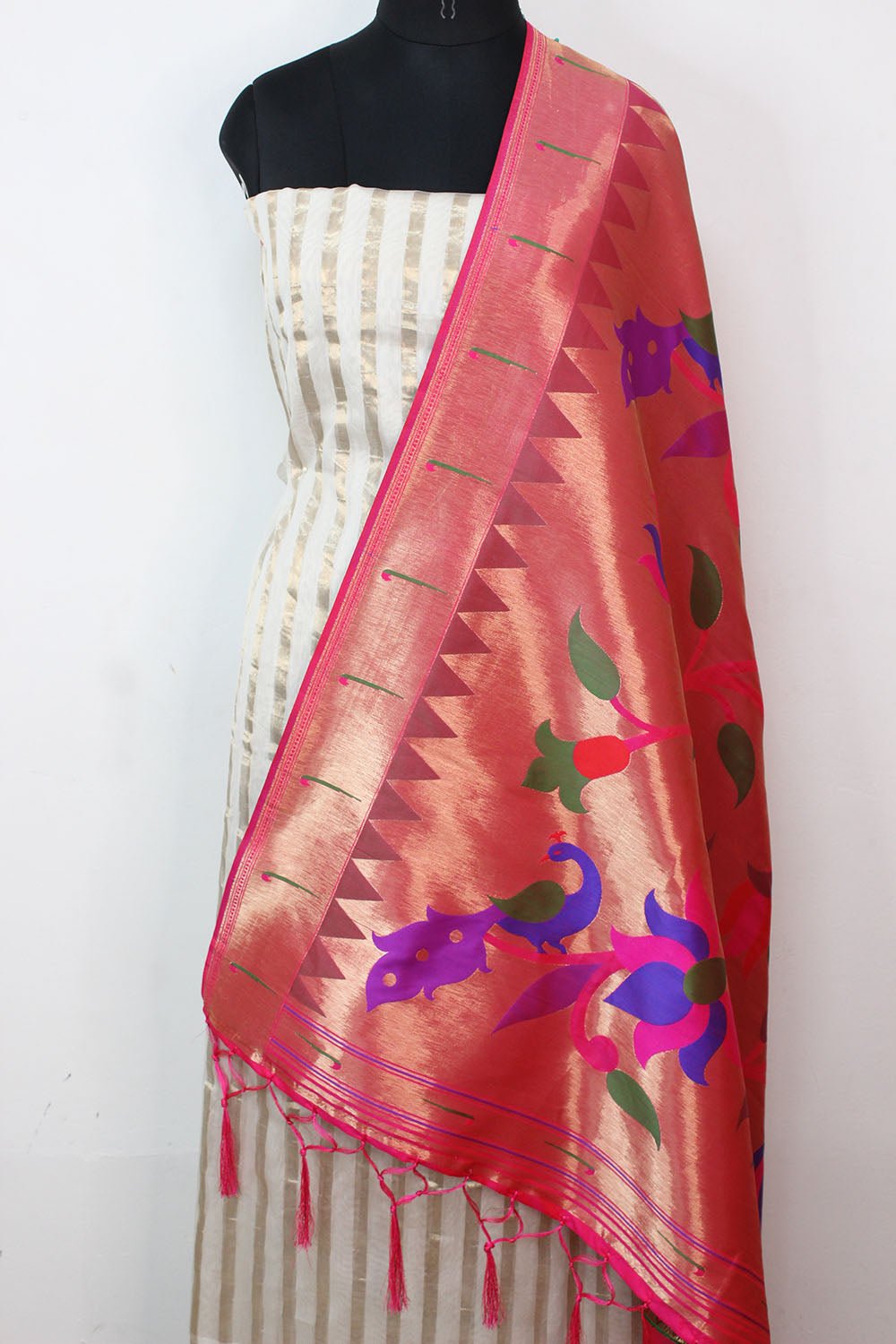 The richness of the material has made Banarasi outfits to be every Indian courtier’s cult weaves for ages now. Banarasi suits denote an affluent taste and are a display of lavish vintage choice of a woman. These suits make great wear for family functions, wedding outfits or pre / post bridal wear. Banarasi Suits are premier grade of clothing, carefully chosen just for you. Let this product travel from the heart of Varanasi straight to your heart. It comes with Top, Dupatta and Bottom fabric.