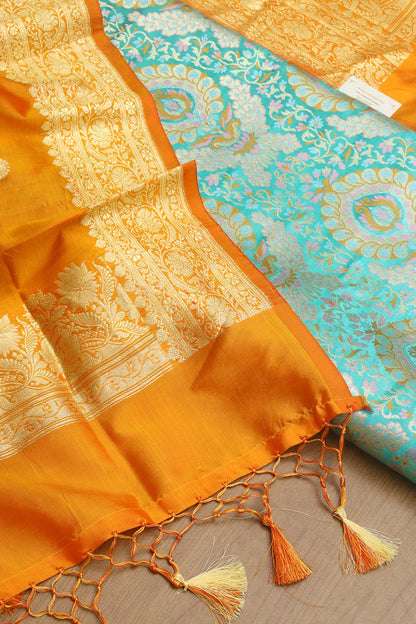 "The richness of the material has made Banarasi outfits to be every Indian courtier’s cult weaves for ages now. Banarasi suits denote an affluent taste and are a display of lavish vintage choice of a woman. These suits make great wear for family functions, wedding outfits or pre / post bridal wear. Banarasi Suits are premier grade of clothing, carefully chosen just for you. Let this product travel from the heart of Varanasi straight to your heart. It comes with Top, Dupatta and Bottom fabric.