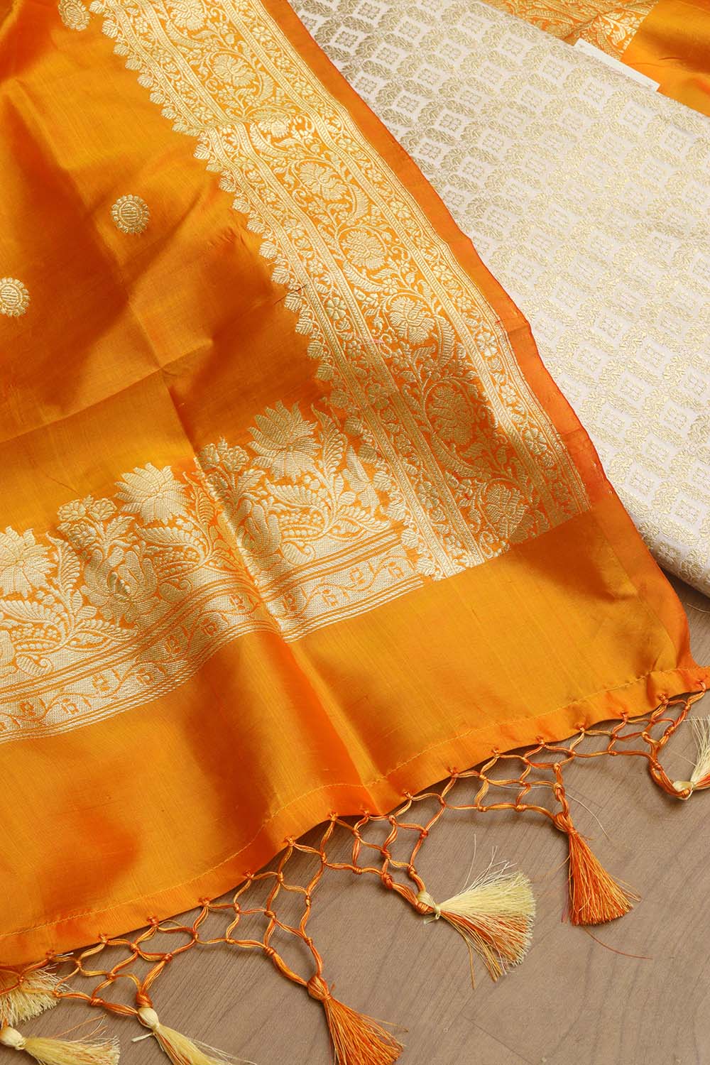 "The richness of the material has made Banarasi outfits to be every Indian courtier’s cult weaves for ages now. Banarasi suits denote an affluent taste and are a display of lavish vintage choice of a woman. These suits make great wear for family functions, wedding outfits or pre / post bridal wear. Banarasi Suits are premier grade of clothing, carefully chosen just for you. Let this product travel from the heart of Varanasi straight to your heart. It comes with Top, Dupatta and Bottom fabric.