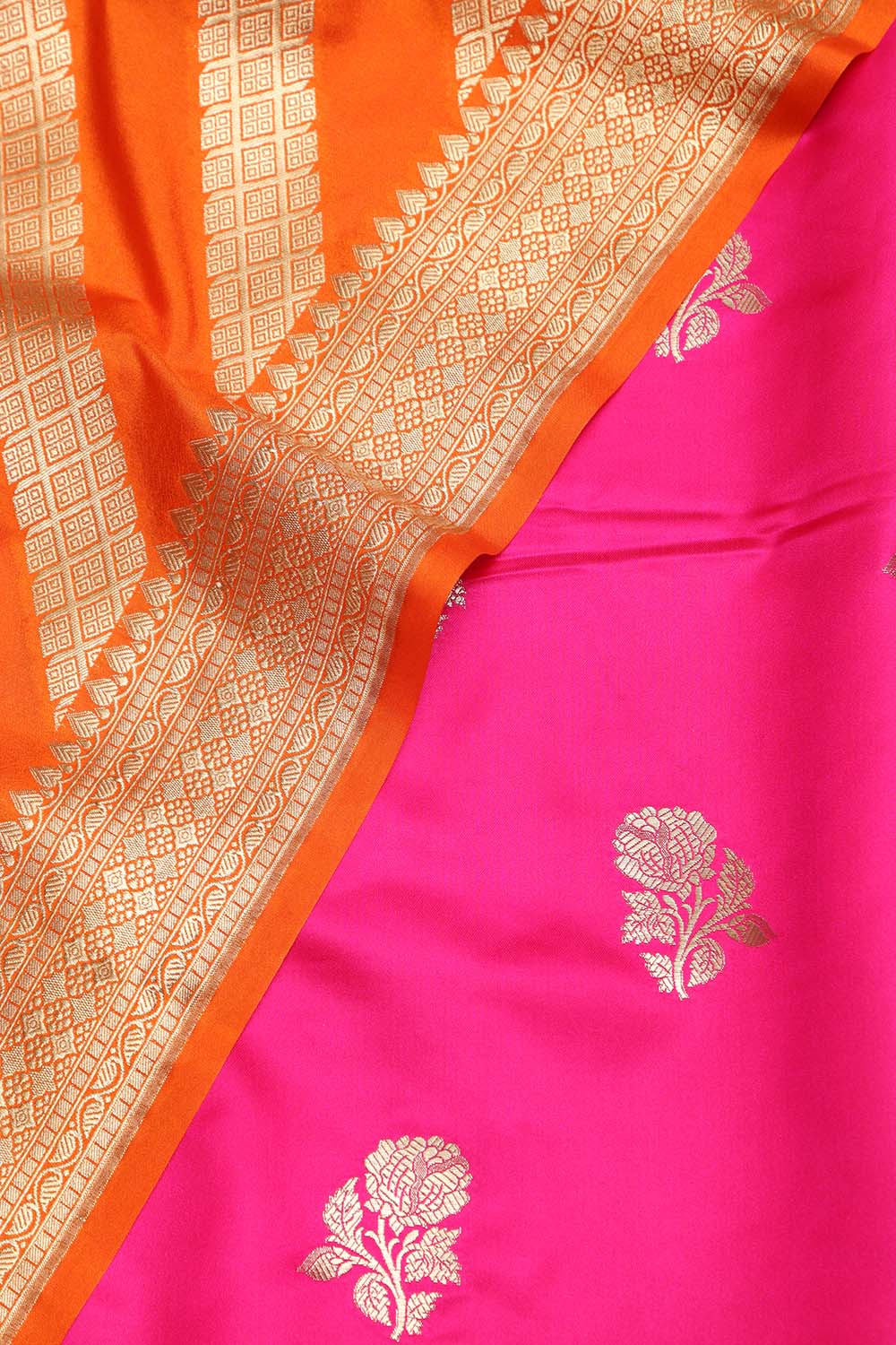 Elevate your ethnic wardrobe with this stunning Pink Handloom Banarasi Silk Flower Design Suit paired with an Orange Banarasi Silk Stripe Design Dupatta. The intricate flower design on the suit adds a touch of elegance, while the contrasting stripe design on the dupatta adds a pop of color. Handloom Banarasi silk fabric ensures a luxurious feel and a flattering drape. This ensemble is perfect for festive occasions and weddings, making you stand out in the crowd. The suit features a comfortable fit and intricate detailing, making it a must-have for any fashionista.