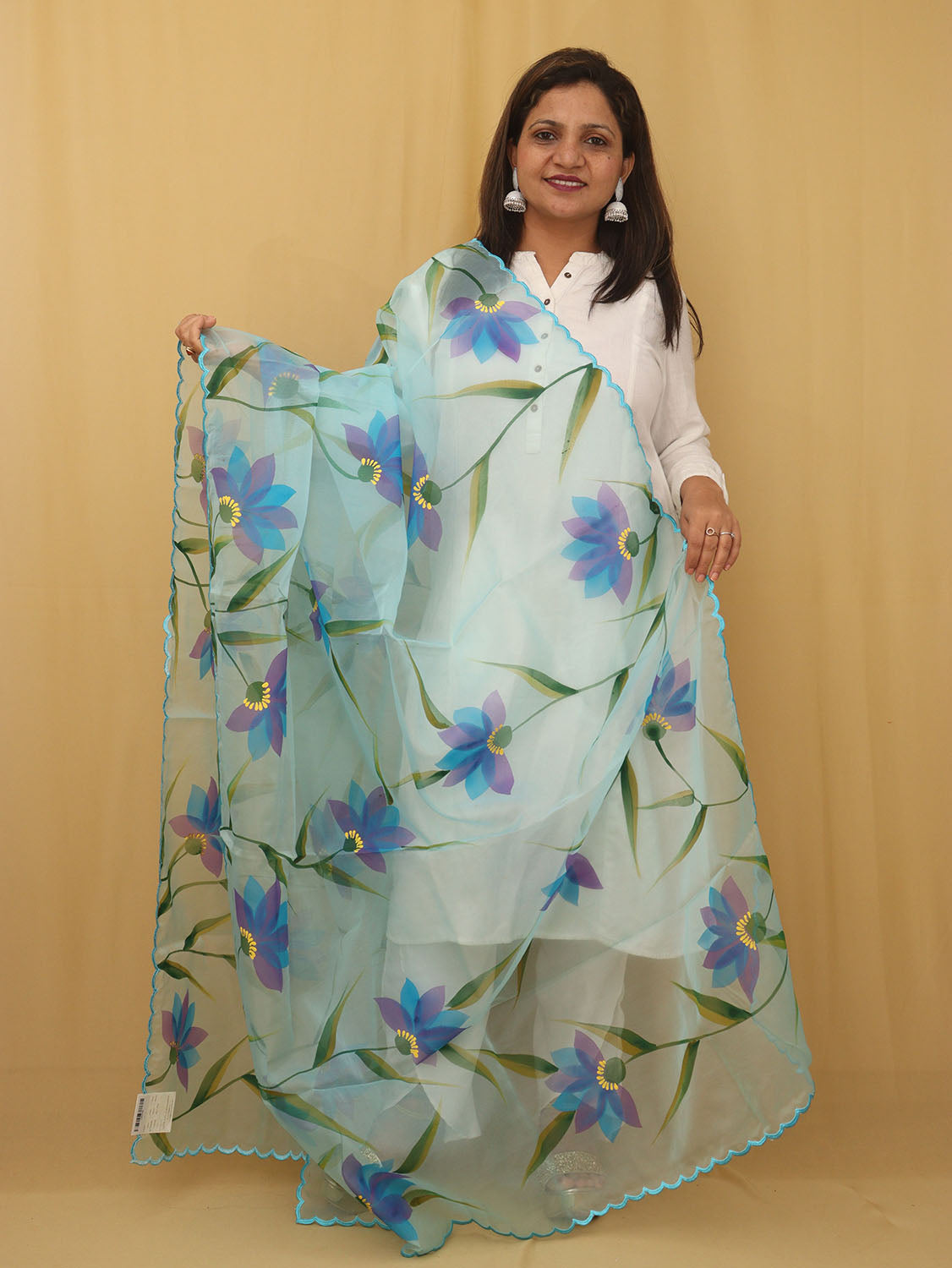 This Hand Painted Suit Set is a must have in your wardrobe Which is a perfect occasion wear. Its an exclusive Suit Set. It comes with Top, Dupatta and Bottom fabric.
