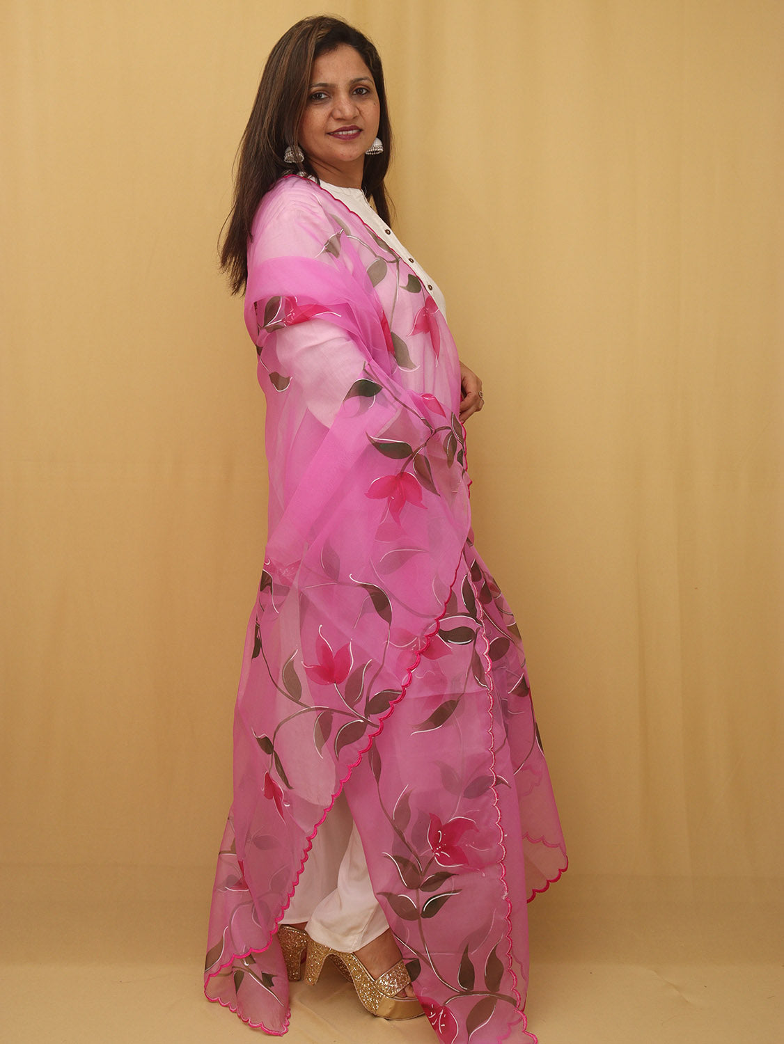 This Hand Painted Suit Set is a must have in your wardrobe Which is a perfect occasion wear. Its an exclusive Suit Set. It comes with Top, Dupatta and Bottom fabric.
