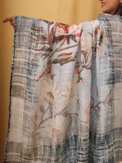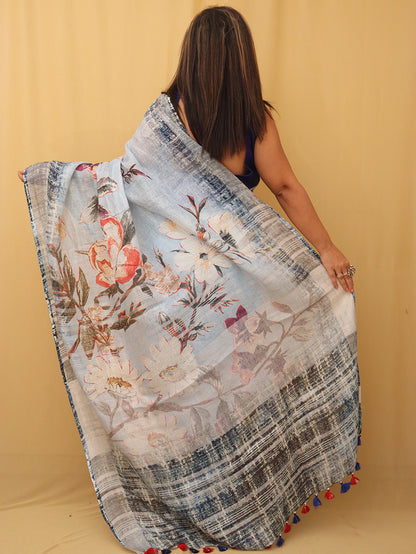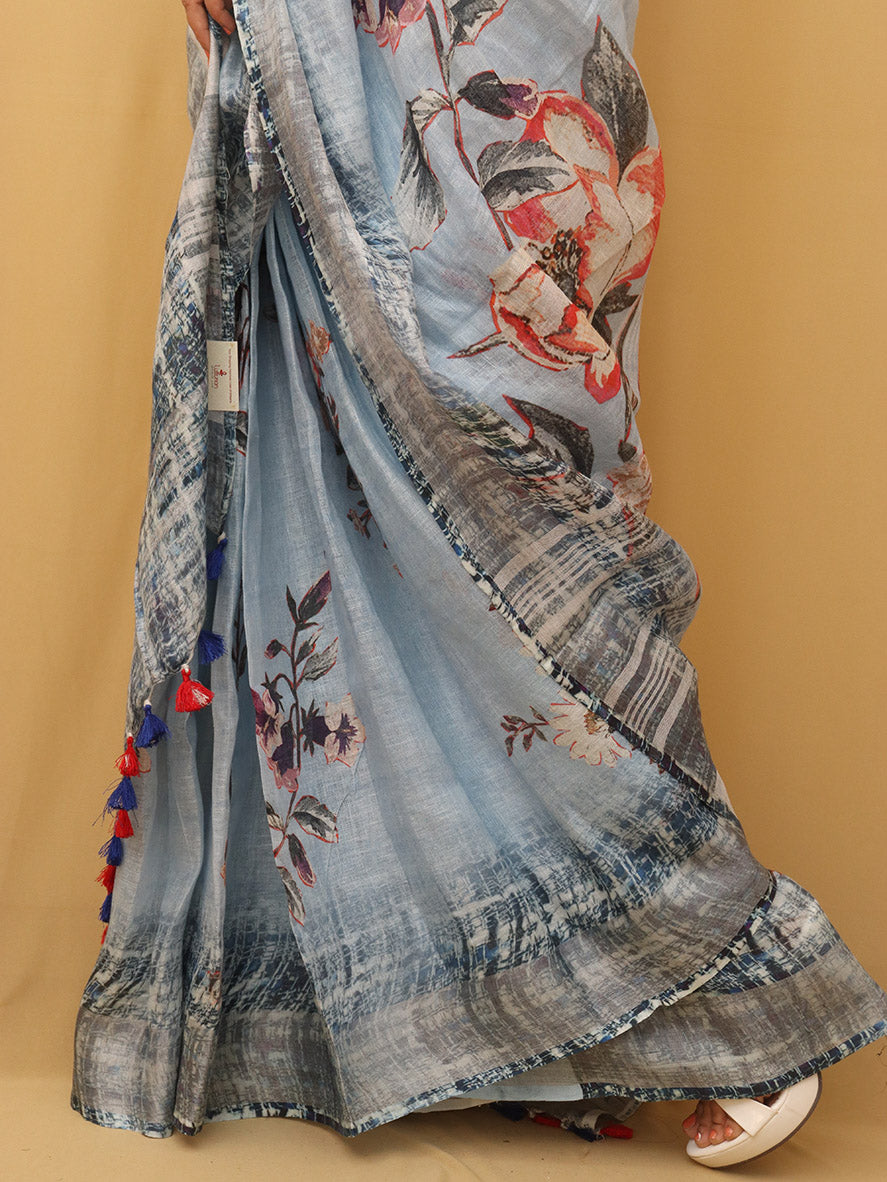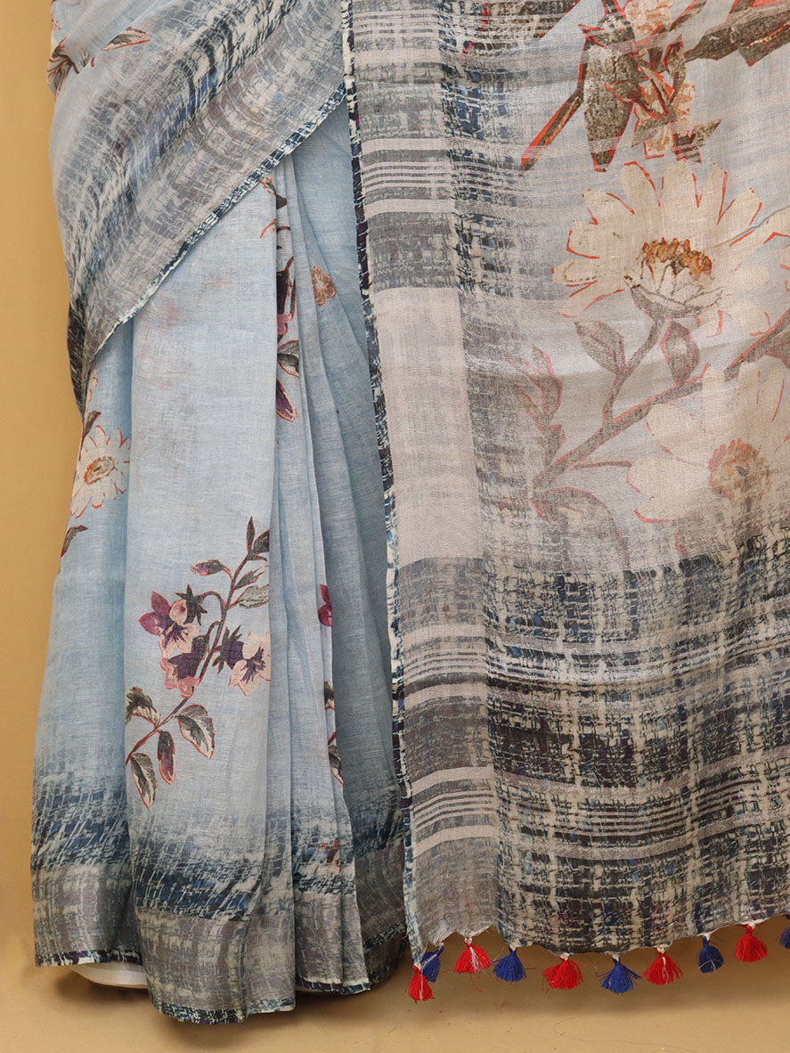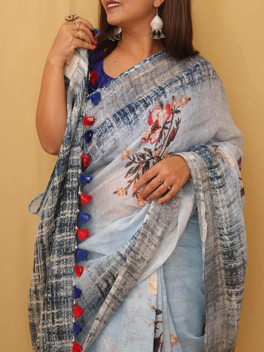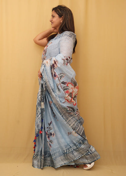 This is a Digital Printed Linen Saree, it is individually crafted to give a gorgeous look to Indian personality.This is a simple yet elegant looking Saree.