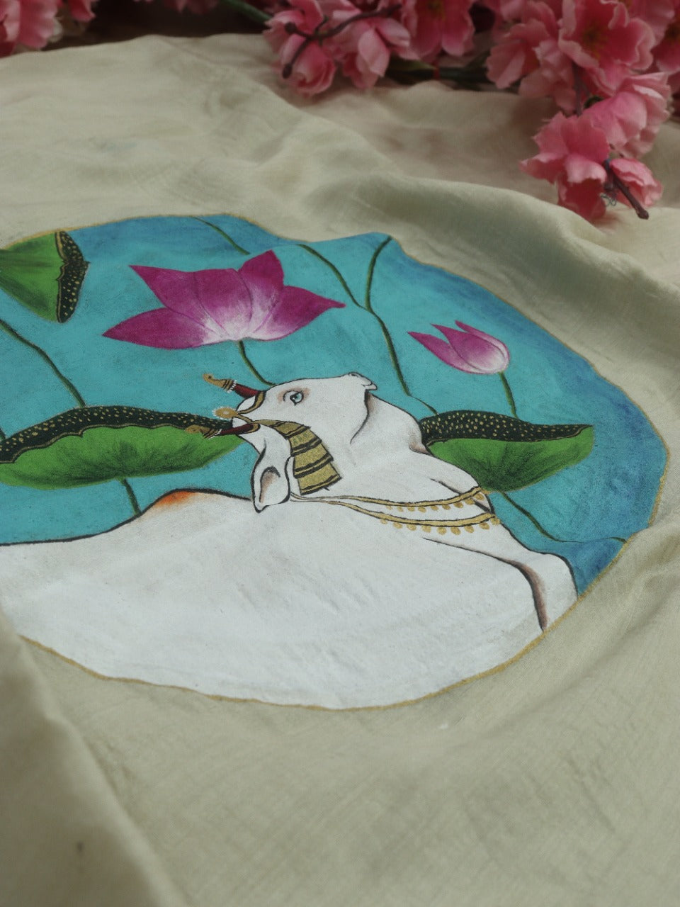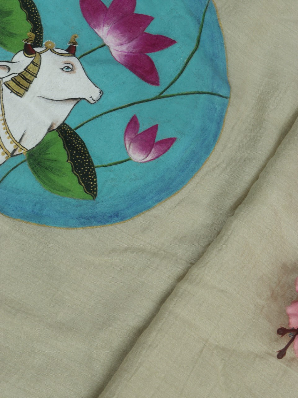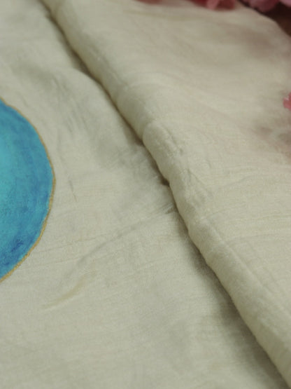 Pastel Hand Painted Pure Moonga Silk Pichwai Blouse Fabric (1 Mtr)
