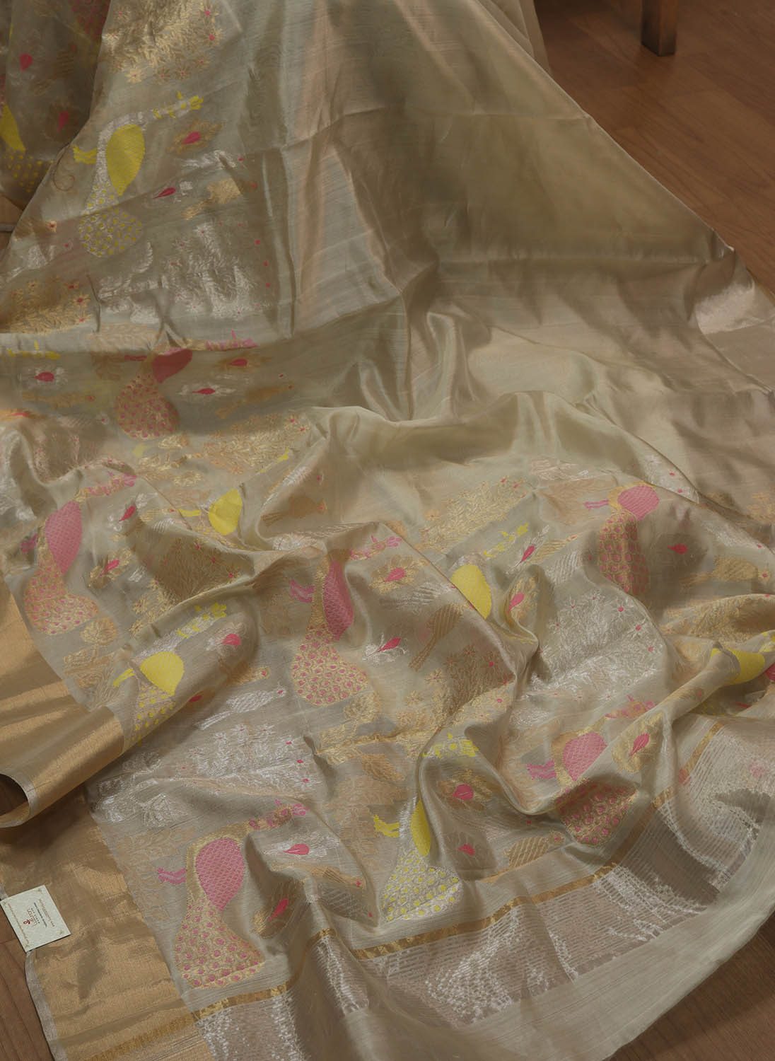 FABRIC: Pure Katan Silk is one of the finest varieties of Silk. It is created by twisting 2-filaments together to create a sturdier and more durable fabric. Due to the nature of its creation, it also makes an interesting textured background for any work that is to be done on the fabric to make it unique. It is known for its versatility, softness and comfort. It can be weakened by sunlight and perspiration.