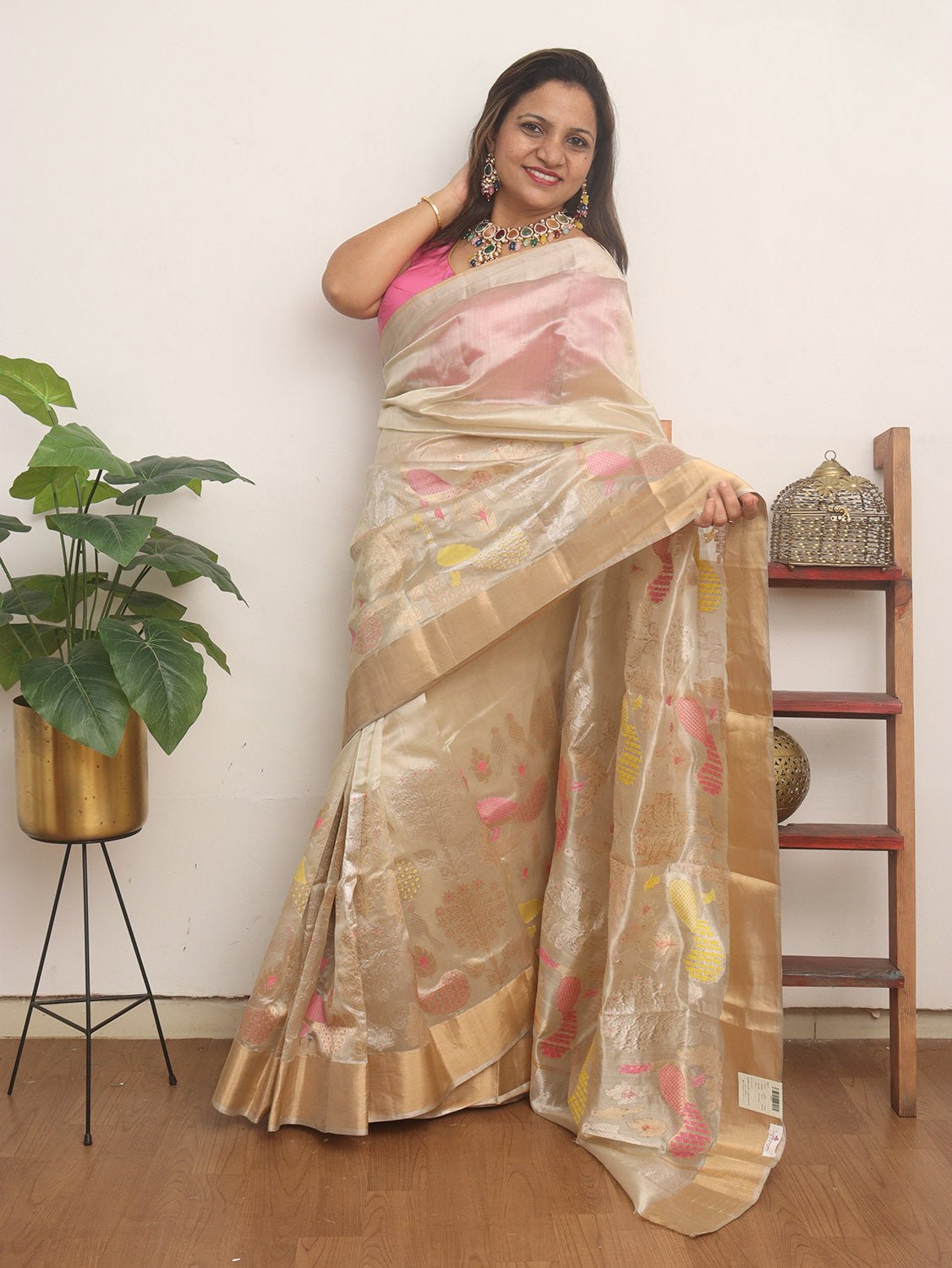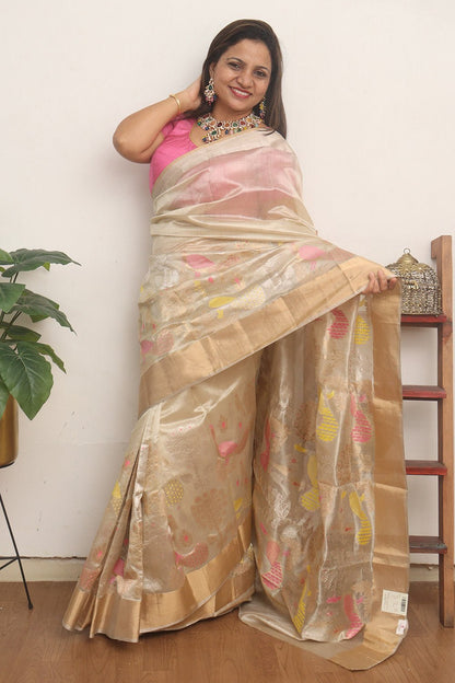 This is a Handloom Chanderi Saree with Blouse piece, which you would love to have it in your wardrobe. This Saree is a perfect occasion wear. Its an exclusive saree Handloom weaved and a fresh collection directly from weavers of Madhya Pradesh. Chanderi is a traditional ethnic fabric characterized by its lightweight, sheer texture and fine luxurious feel. Chanderi fabric is produced by weaving in silk and golden Zari that results in the creation of the shimmering texture.