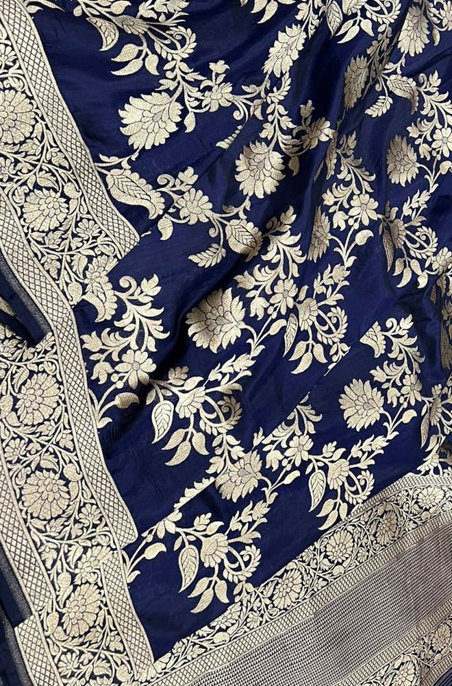 Blue Handloom Banarasi Pure Katan Silk Dupatta