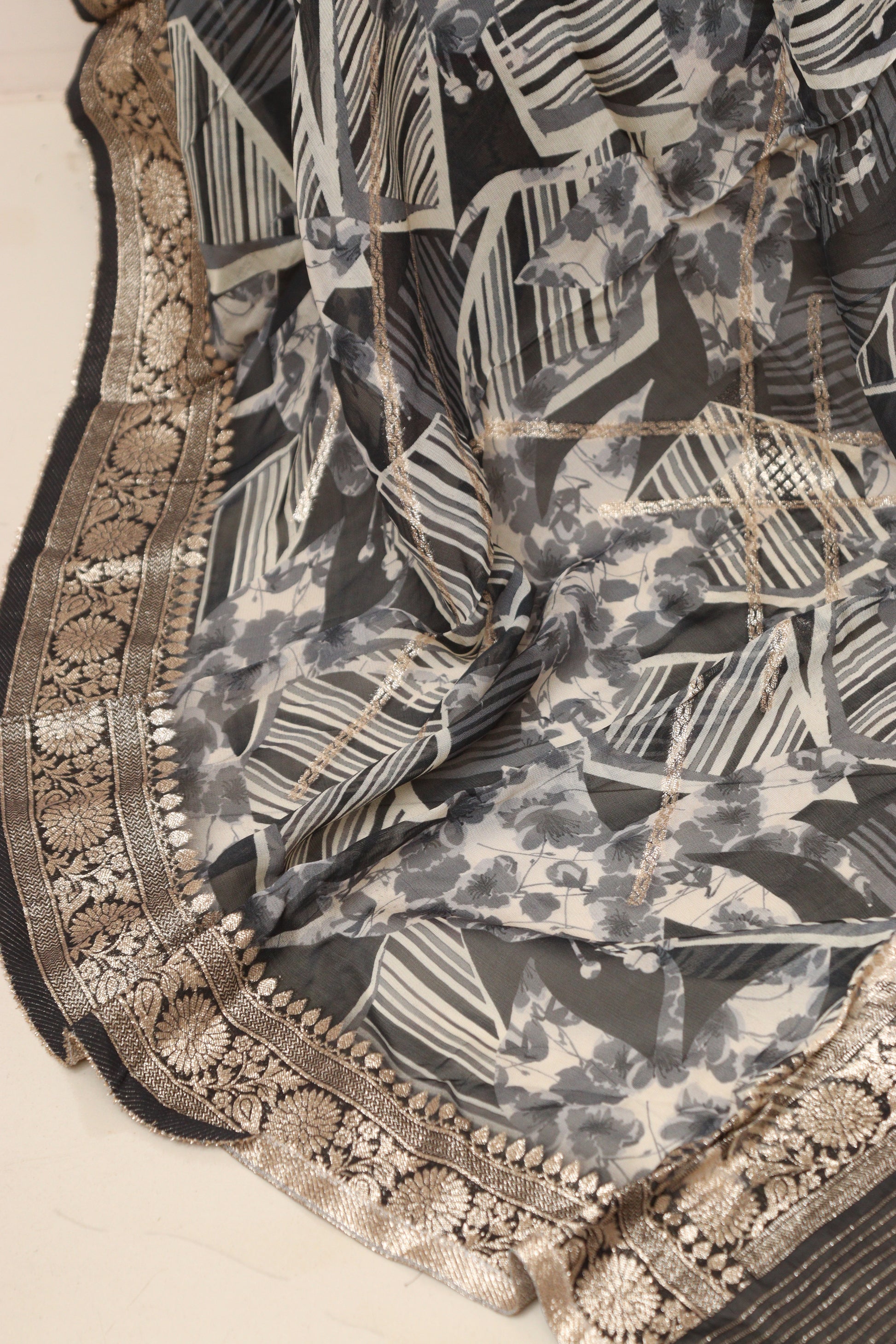 The Black Banarasi Digital Printed Chiffon Georgette Dupatta is a stunning accessory that adds a touch of elegance to any outfit. Made from high-quality chiffon georgette fabric, this dupatta features intricate Banarasi digital prints in black, creating a beautiful contrast against the light fabric. The lightweight and breathable material make it perfect for all seasons, while the digital printing ensures a long-lasting and vibrant design. This versatile dupatta can be paired with both traditional and contemporary outfits, making it a must-have in every woman's wardrobe.