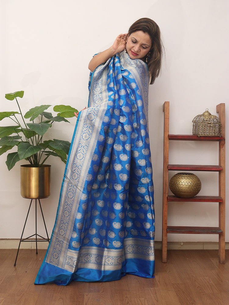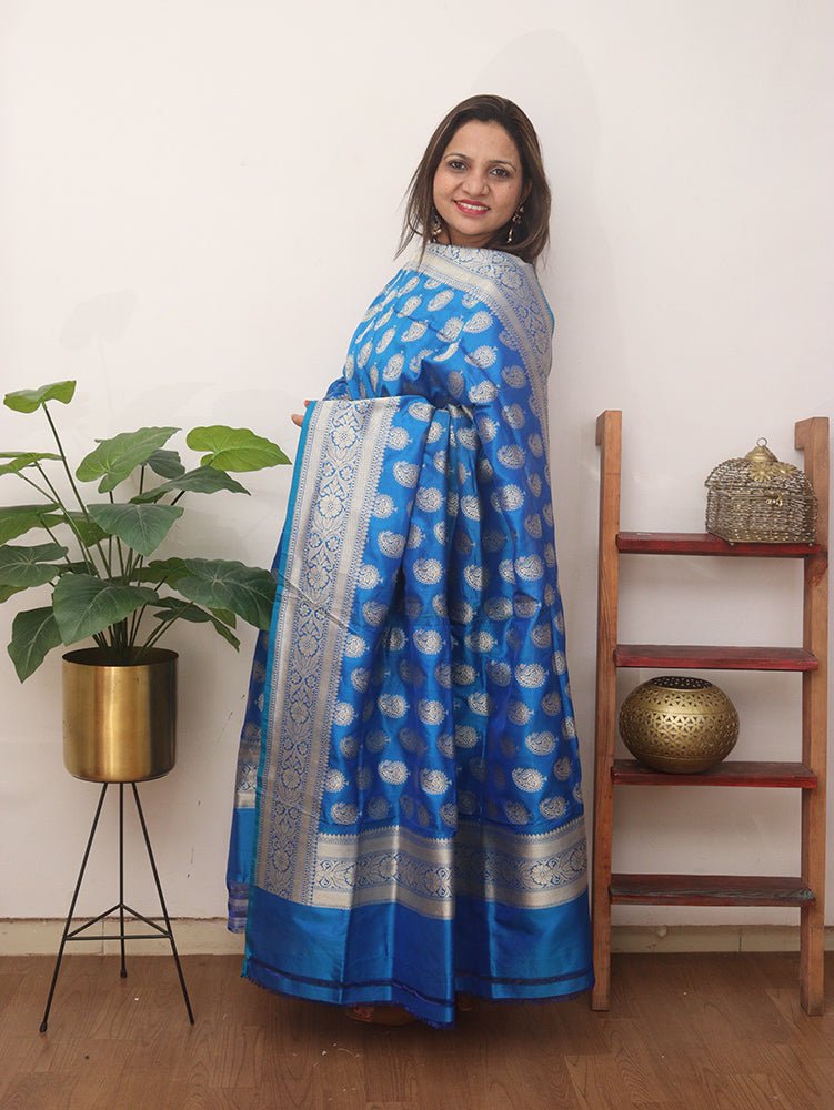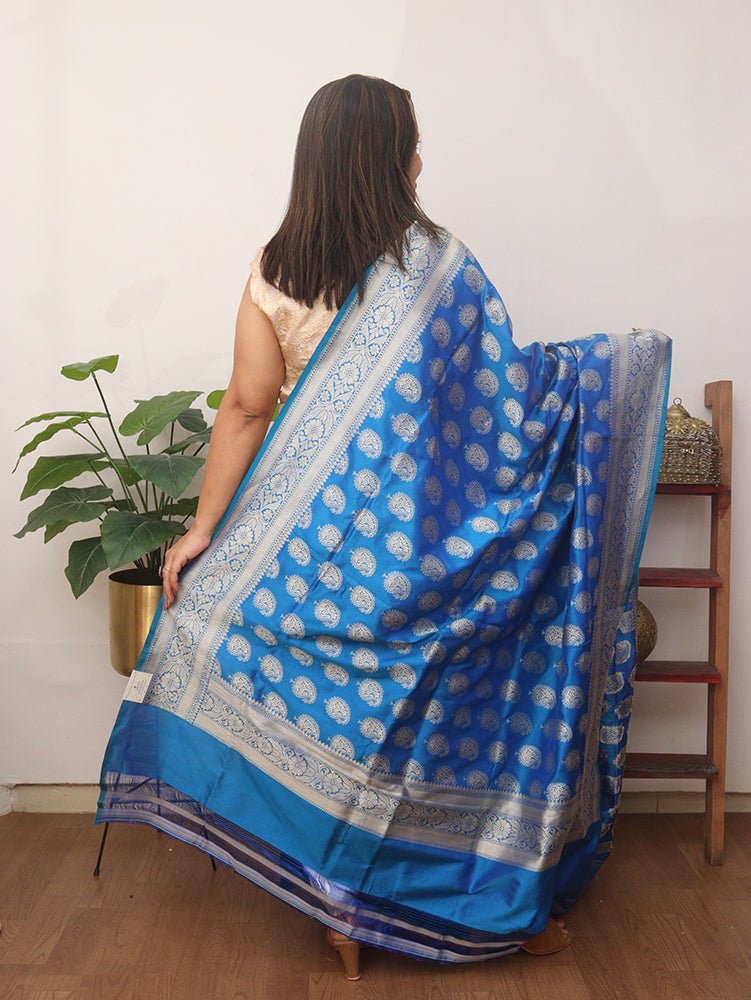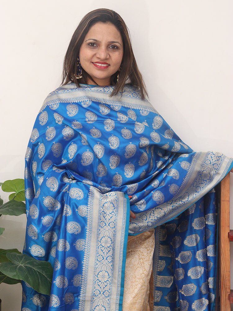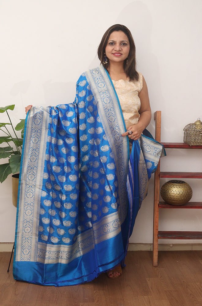 Blue Handloom Banarasi Pure Katan Silk Dupatta
