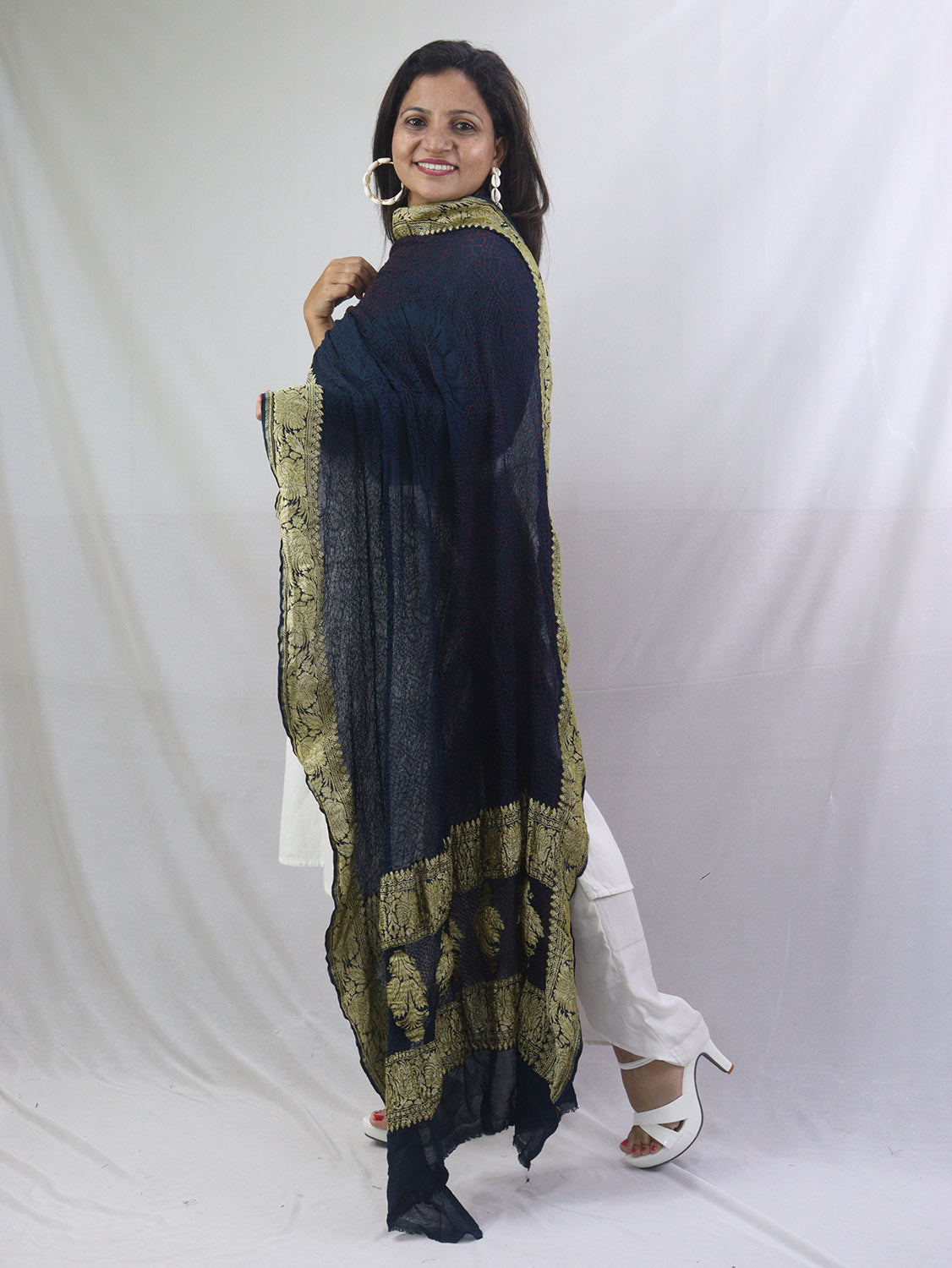 So, if you're looking for a beautiful and elegant accessory to add to your wardrobe, the Blue Bandhani Pure Georgette Dupatta is definitely worth considering. With its high-quality fabric, intricate design, and versatile style, it's sure to become a favorite in your collection.