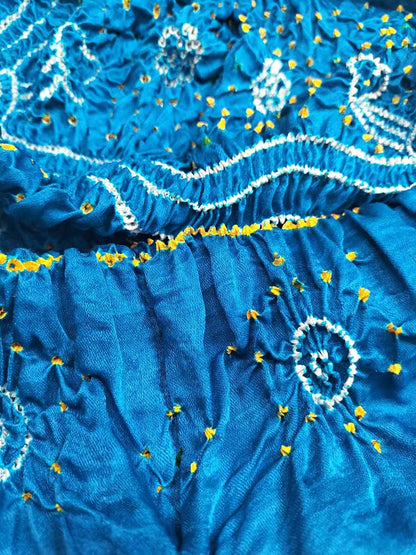 • Its an Indian traditional ‘tie and dye‘ art with Resist-dyeing technique gives a vibrant spectrum of colours enhancing the beauty of drapery.