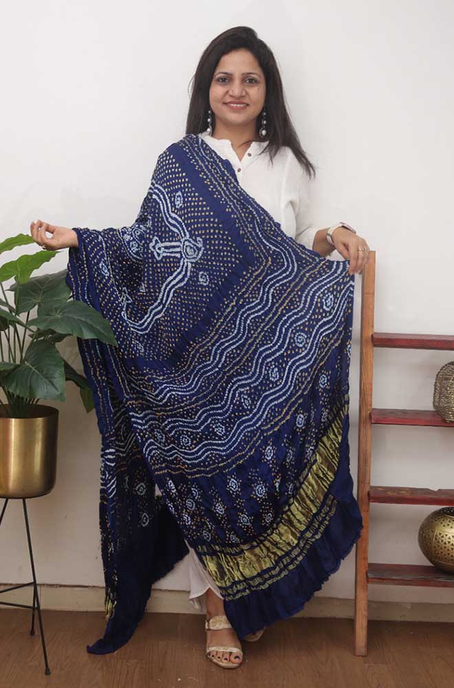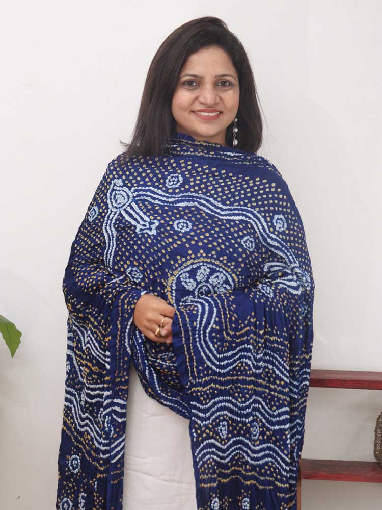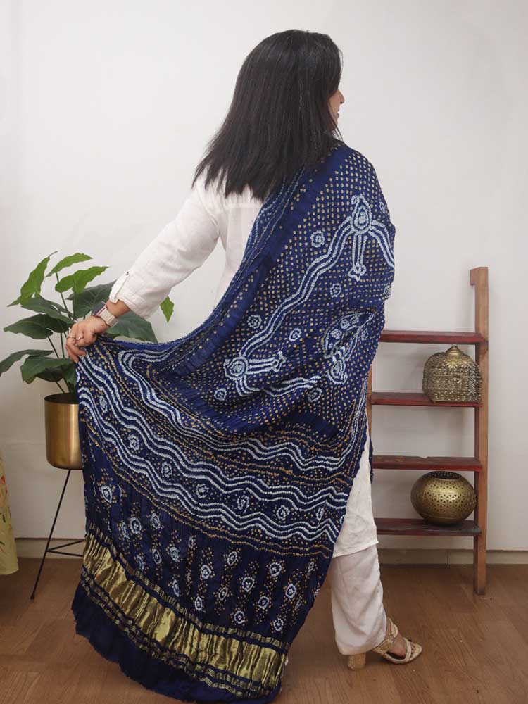 Blue Bandhani Gajji Silk Dupatta