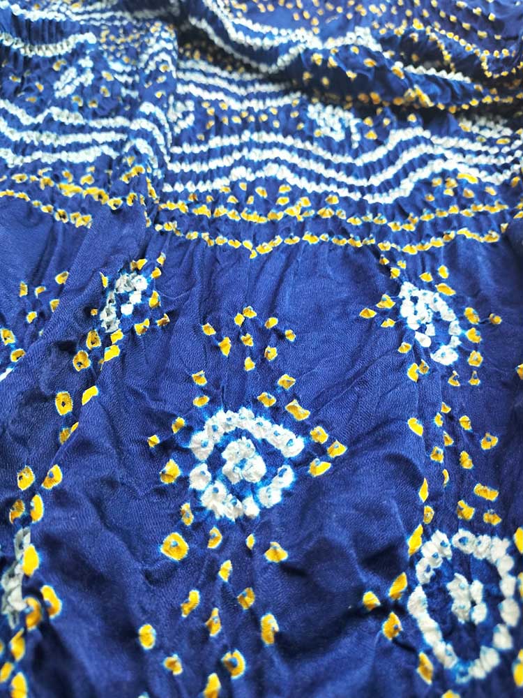 • Its an Indian traditional ‘tie and dye‘ art with Resist-dyeing technique gives a vibrant spectrum of colours enhancing the beauty of drapery.