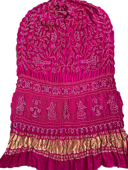 Pink Bandhani Pure Gajji Silk Rai Bhandhej Dupatta