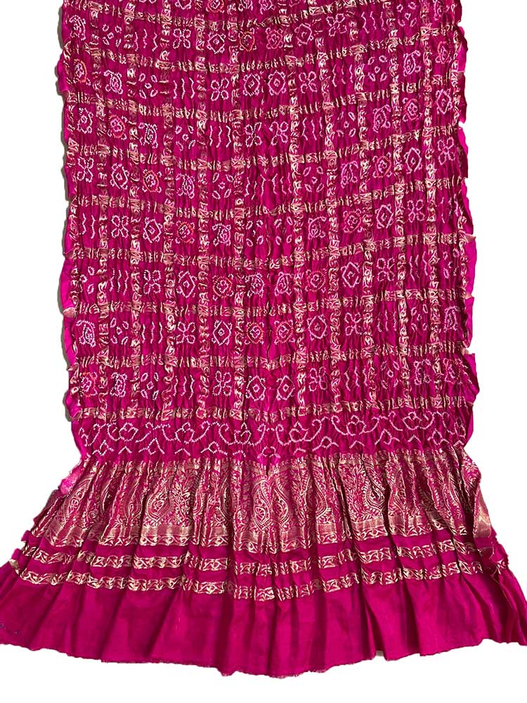Pink Bandhani Pure Gajji Silk Checks Design Dupatta