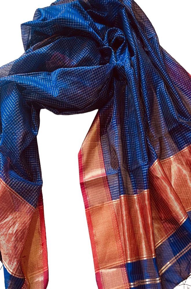 This is a Handloom Maheshwari Silk Cotton Dupatta which you would love to have it in your wardrobe. Its an exclusive dupatta weaved and a fresh collection directly from weavers in Madhya Pradesh. These Dupattas are largely produced in the town of Maheshwar in Madhya Pradesh. The colors of the Maheshwari dupatta are made using natural vegetable dyes.