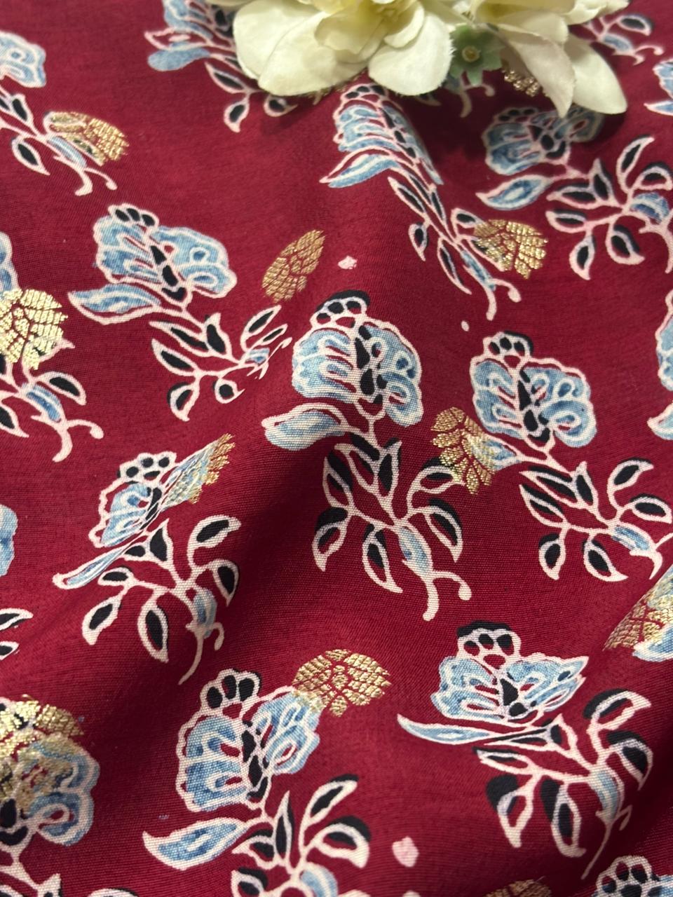 The Maroon Ajrakh Banarasi Silk Fabric is a luxurious and elegant choice for any special occasion. This fabric features a stunning maroon color with intricate Ajrakh designs that add a touch of traditional charm. The Banarasi silk material is known for its smooth texture and rich sheen, making it a favorite among fashion enthusiasts. This fabric is perfect for creating stunning ethnic wear such as sarees, lehengas, and suits. The Maroon Ajrakh Banarasi Silk Fabric is sure to make you stand out in any crowd with its timeless beauty and sophistication.